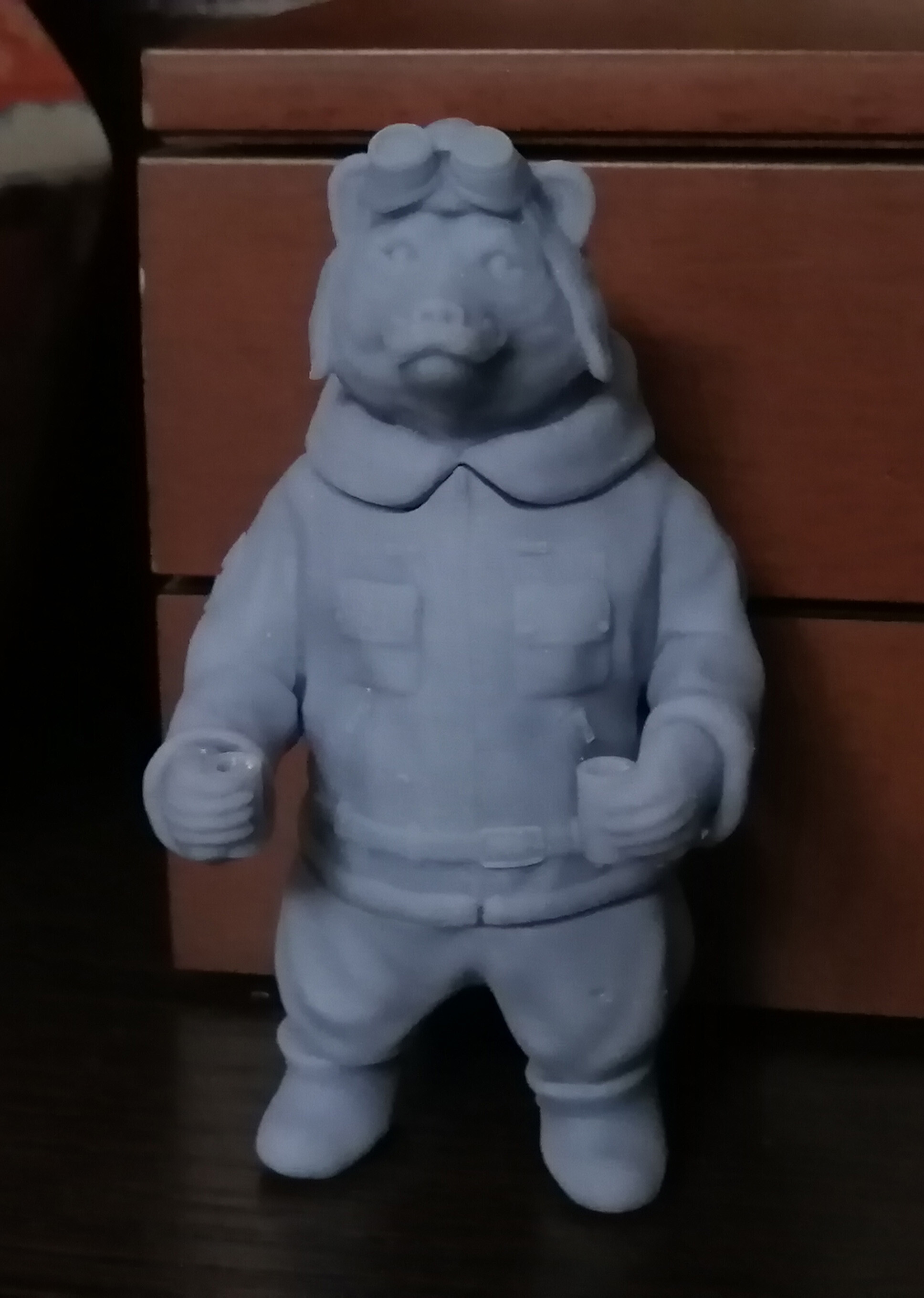 Моделирование завершили и перешли к печати, для начала я отделил торс и ноги, поставил на печать, случилась беда поддержки не выдержали из-за хрупкости и мишка немного приуныл.