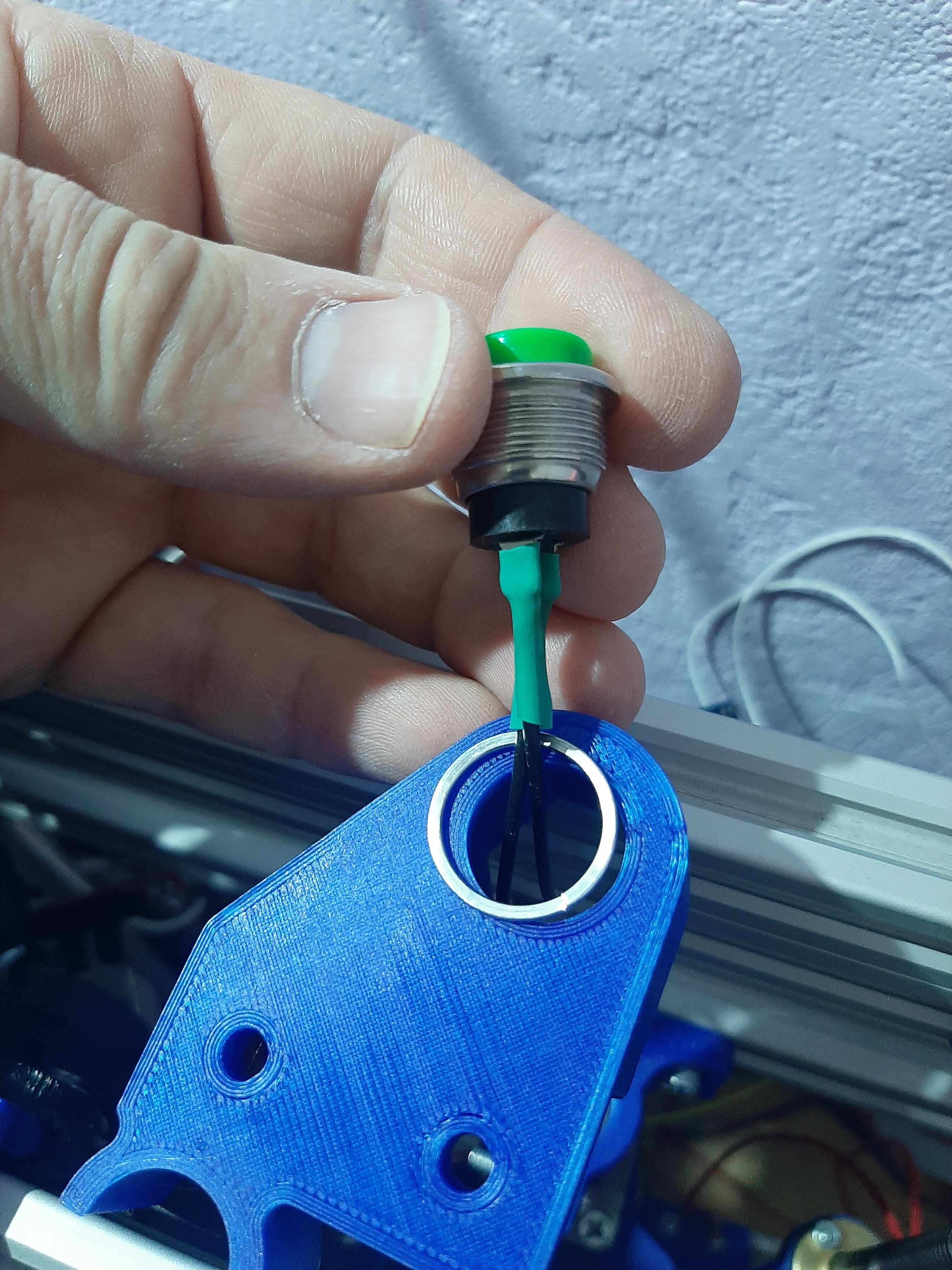 Для тех, кто не в курсе, - в таких блоках есть проводок, при замыкании которого на землю запускается питание блока. Напряжение на проводке низкое, токи небольшие, поэтому использовал самую дешманскую тактовую кнопку и напечатанный к ней корпус: