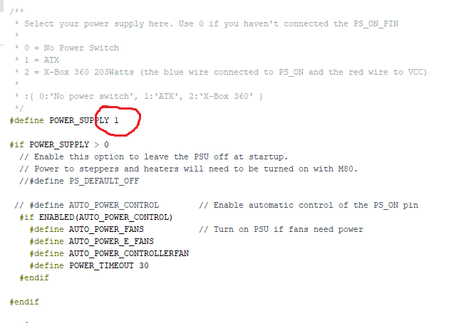 Итак, открываем Марлин. Во вкладке Configuration.h ищем блок, отвечающий за питание (он почти в самом начале). Ставим там единичку вместо нуля! И всё!!!