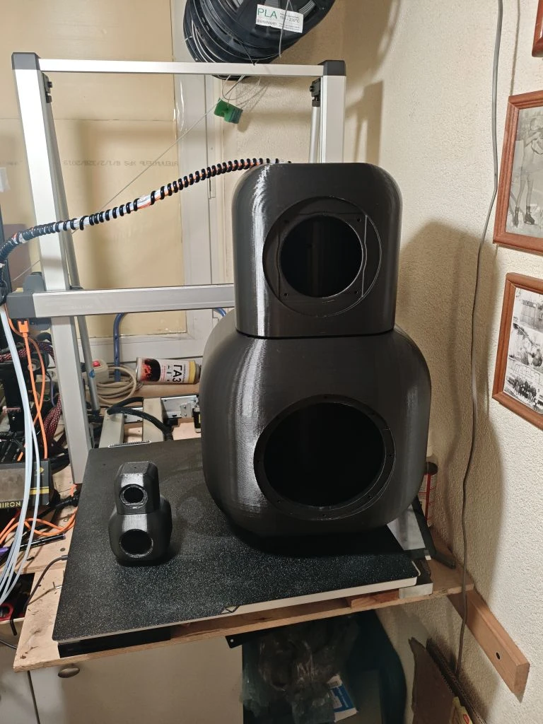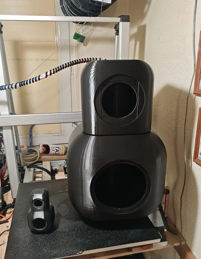 Печатал я 0,4 соплом, PLA. Колонка состоит из двух больший частей, нижняя печатается 60+ часов, верхняя примерно 40. Общий расчетный вес ~2,5 кг.