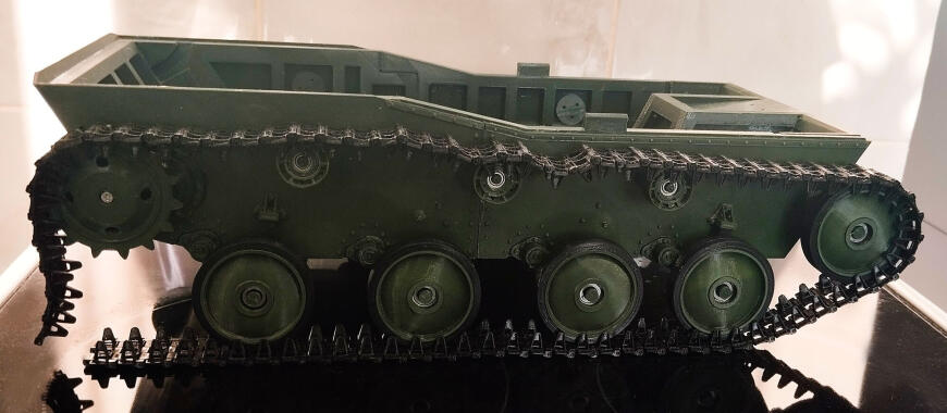 Шасси я сделал максимально простым в сборке и очень прочным: заблокированные дифференциалы, толстые полуоси и валы, прочные шестерни и жёсткая конструкция, выдерживающая активную езду.