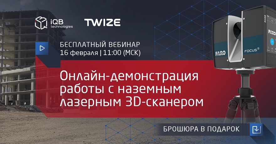 Компания iQB Technologies проведет бесплатный вебинар «Онлайн-демонстрация работы с наземным лазерным 3D-сканером». Участники ознакомятся с процессом 3D-сканирования больших объектов, получат рекомендации практикующего эксперта компании TWIZE по созданию 3D-моделей и узнают, можно ли мгновенно обмениваться 3D-данными по всему миру.