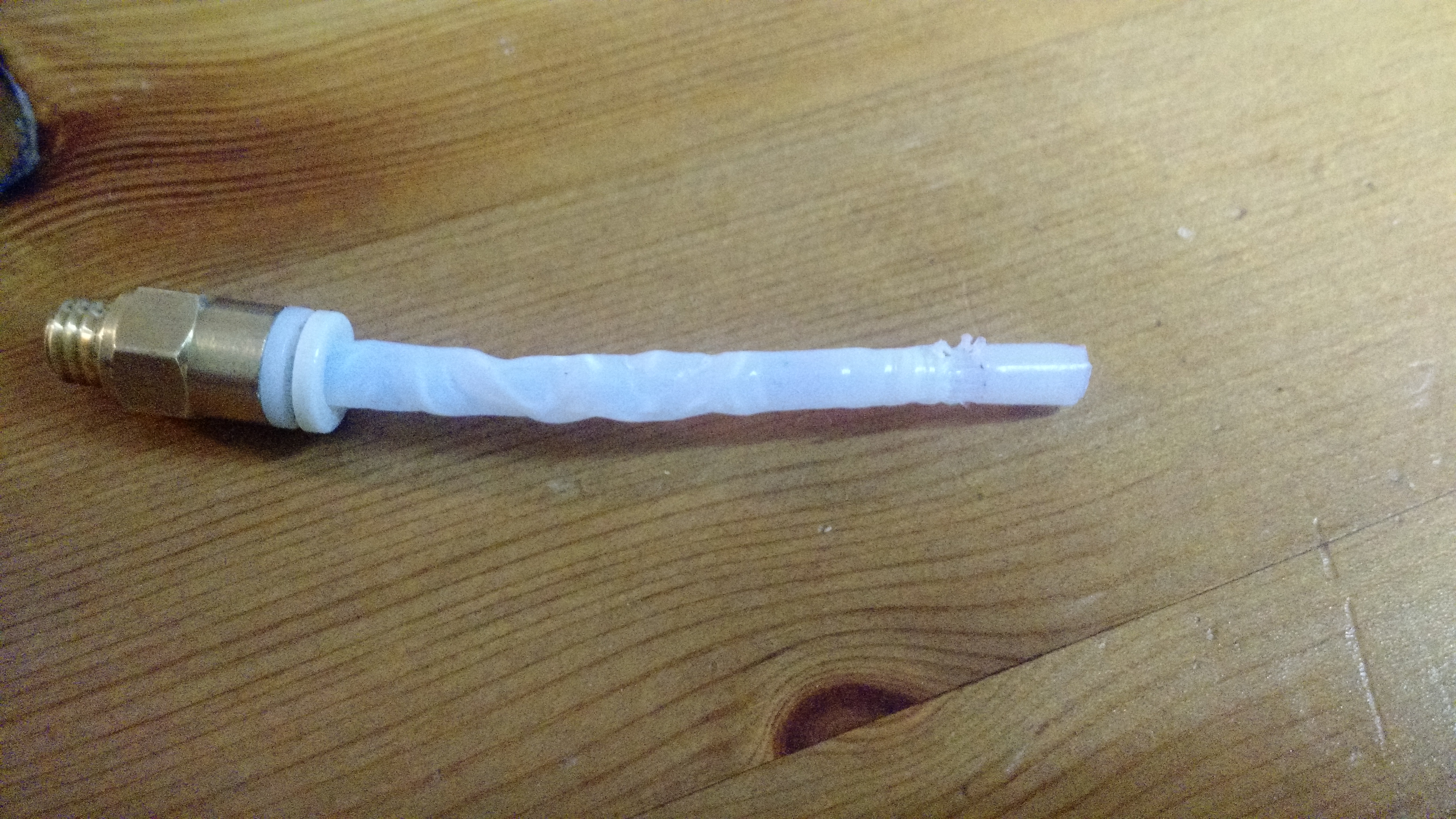 Далее начался поиск трубки с бОльшим внутренним диаметром и с внешним в 4мм. Трубка заходит до хот-энда, да и фитинги по 4мм. Нашёл в Китае внутренний 3,2мм внешний 4мм, подождал месяц, поставил. Откалибровал всё под новый пластик, давай печатать сложную модель с кучей ретракта. В принципе пластик хороший, ничего плохого про него сказать не могу.