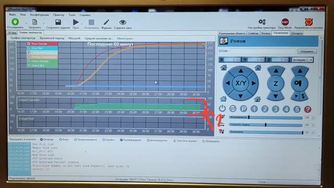 Недавно приобрёл Anet a10 попечатал PLA пластиком при настройках (сопло 200, стол 60), откалибровал , всё ок. Но тут купив ABS обнаружил проблему , стол нагревается до ста гдето за пол часа, а сопло до 235 даже за 3 часа не нагрелось! Покопавшись в инете решил сдделать настройку PID. Включив repiter host оказалось что на сопло идёт только 50% напряжения... Что делать и как с этим бороться ???? Help SOS