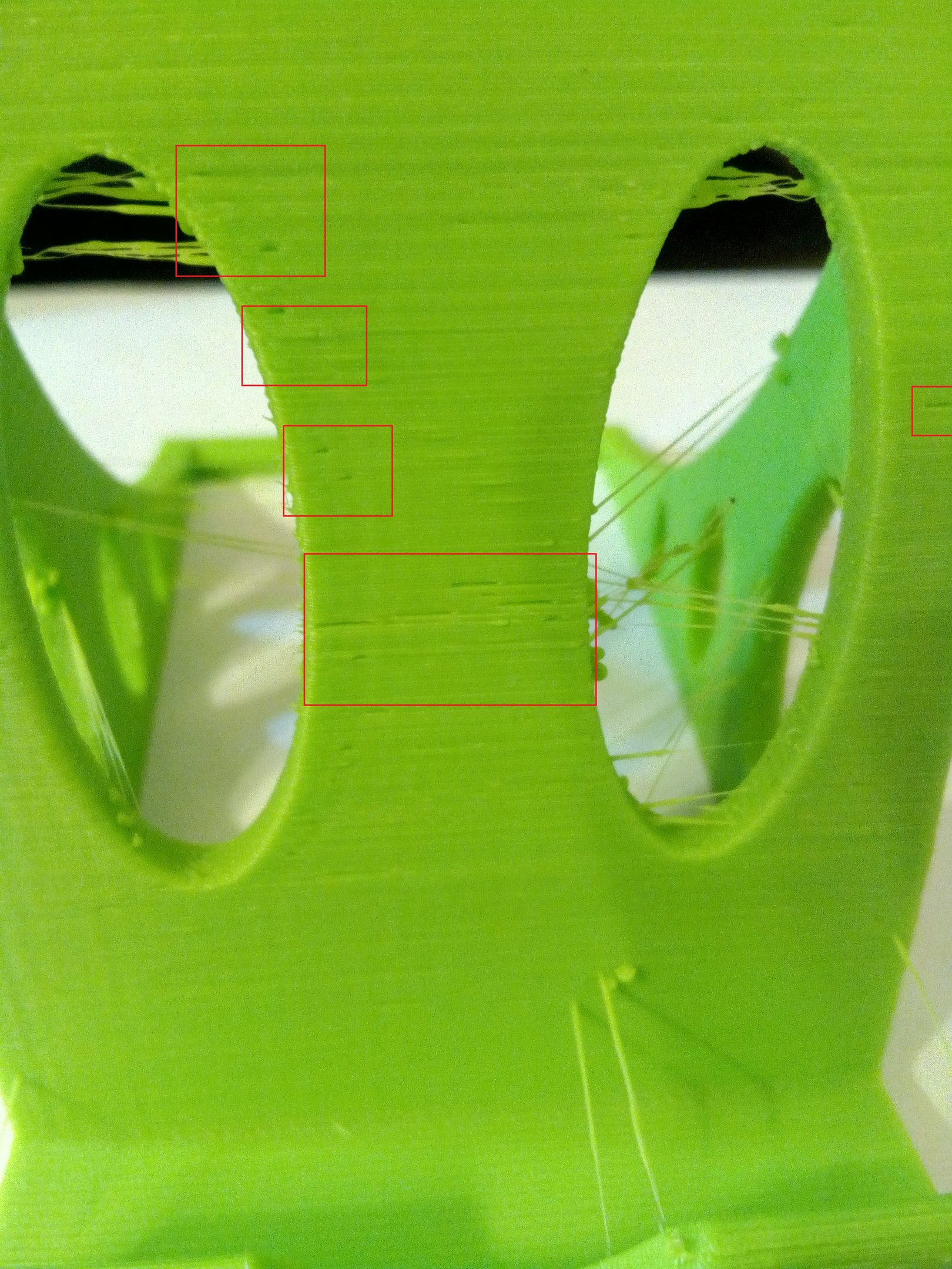 До прошивки такого не замечал (сопли), были пропуски или как бы выразится типа царапин это было и осталось сейчас после прошивки на марлин. На фото зелёная деталь там я обвёл царапины, На других фото белая и зелёная - сопли. Слайсером пользуюсь Кура, попробовал установил Repetier-Host для проверки работы экструдера. Замерил 10 см. пластика и пропустил через экструдер, в первый раз прошло 97 мм. а во второй раз точно 100 мм. В ретракте в куре у меня такие установки - скорость 40 а расстояние 1,5 попробовал изменить на угад и поставил скорость 45 и расстояние 2,5 не помогло не чего не изменилось. Как с этим бороться в куре, в Repetier-Host я не чего не понимаю и пока его не хочу изучать.