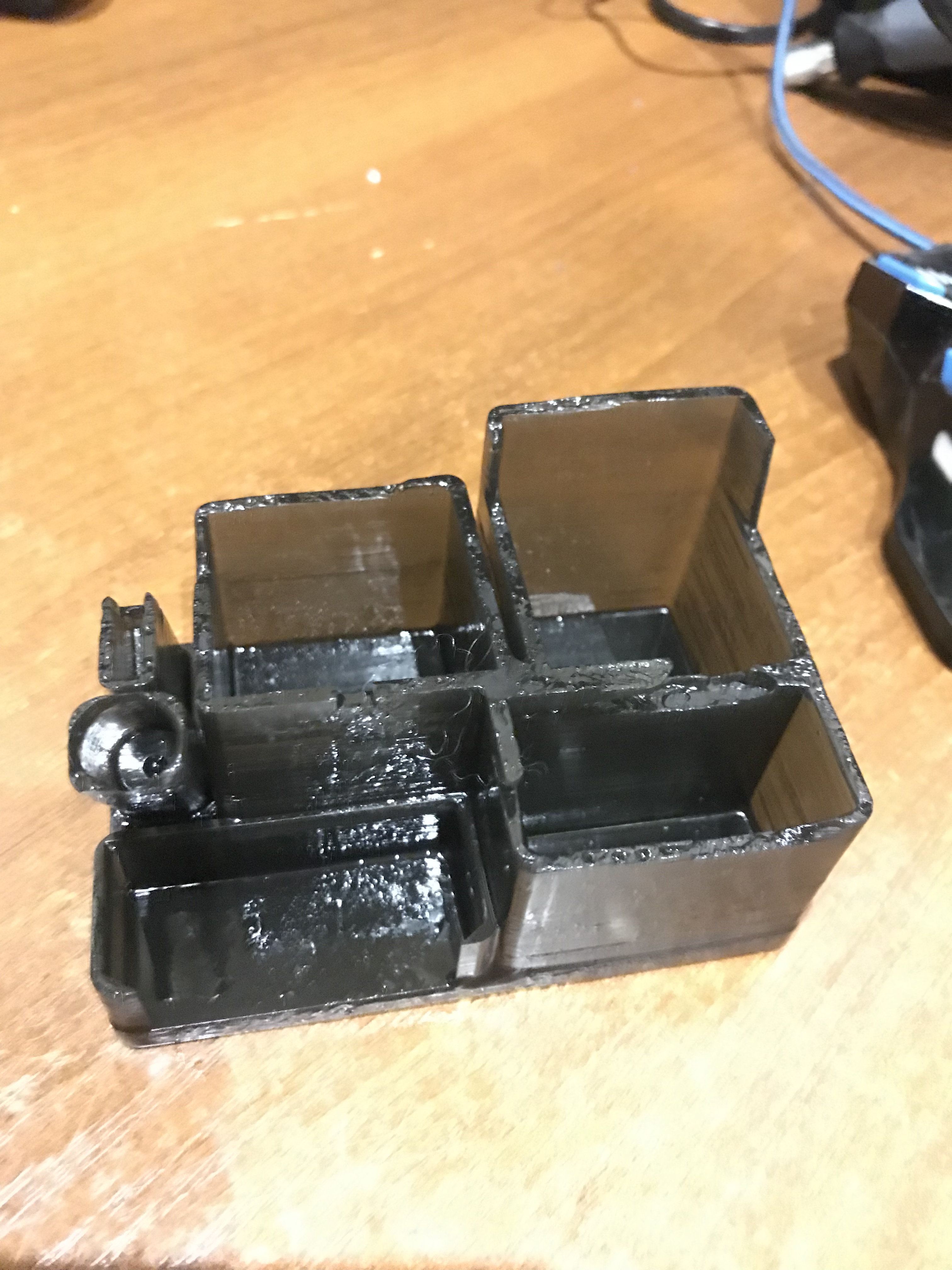 Много раз пытался распечатать органайзер для канцелярии. Сначала была проблема с прилипанием к столику, модель из за массивности отваливалась на середине печати. Эту проблему я решил и сейчас модель прилипает, как нужно.