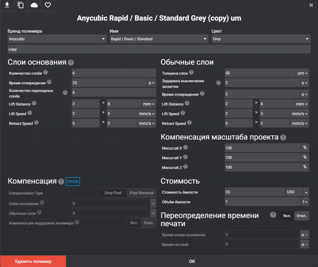 Доброго времени суток! Столкнулся с такой проблемой, полосы при печати и артефакты на самой модели. Принтер Anycubic Mono X 6k, большая часть артефактов была удалена до фото, они были гораздо длиннее. Может кто-нибудь подсказать что это может быть? Смола Anycubic Basic Grey. Отфильтрована перед печатью. Скрины настроек прилагаю