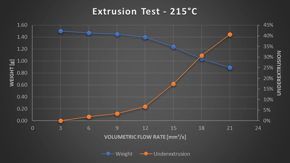 Суть вот в чём. Выдавливание пластика при разных Скоростях (правильнее будет тут говорить об Объёмной Скорости Потока, Volumetric Flow Rate, VFR) не имеет линейную характеристику. То есть скажем при медленной печати, VFR = 4-5, пластик выдавливается "нормально", то есть FLOW можно оставить 100%, всё будет красиво. Но вот при приближении к практическому максимуму нагревающей системы начинается экспоненциальное снижение выдавливания. То есть скажем при VFR = 7 мне требуется уже 103% FLOW, а при VFR = 10, FLOW нужен порядка 106%.