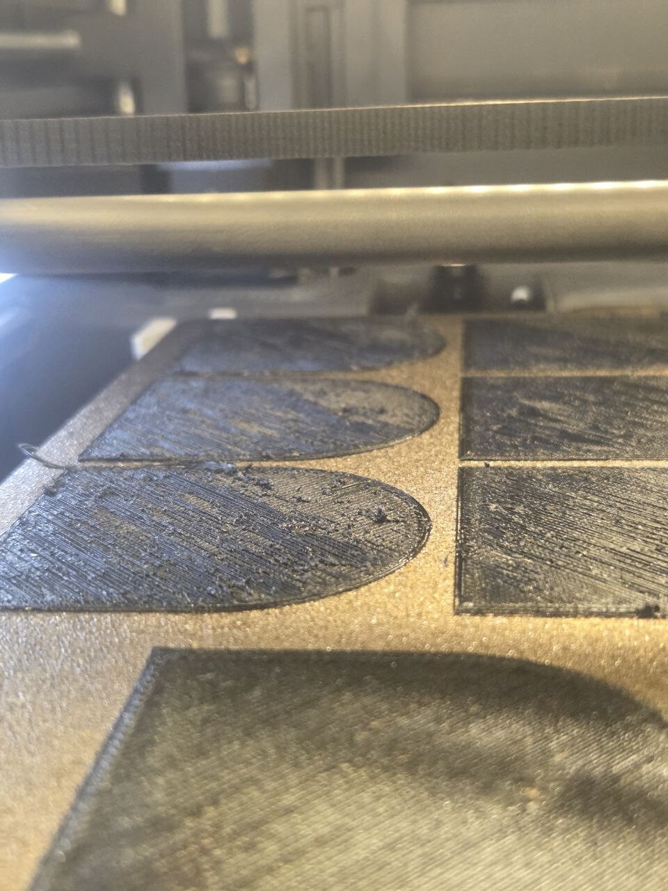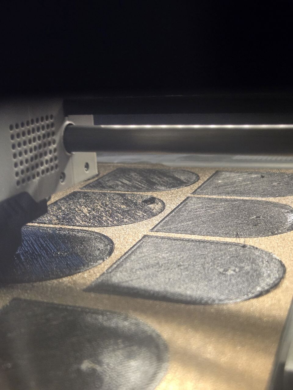 Друзья, столкнулся с такой проблемой, что на разных платиках вылезает одна и та же проблема... Нет нормальной укладки первого слоя. Проходы не прилегают друг к другу. Причем, проблема появилась единомоментно. То есть, вечером печатал и было все в порядке, утром включаю печать и первый слой не ложиться. На смене направления как-будто выплеск идет, а на проходе не выдает нужного количества филамента на стол.
