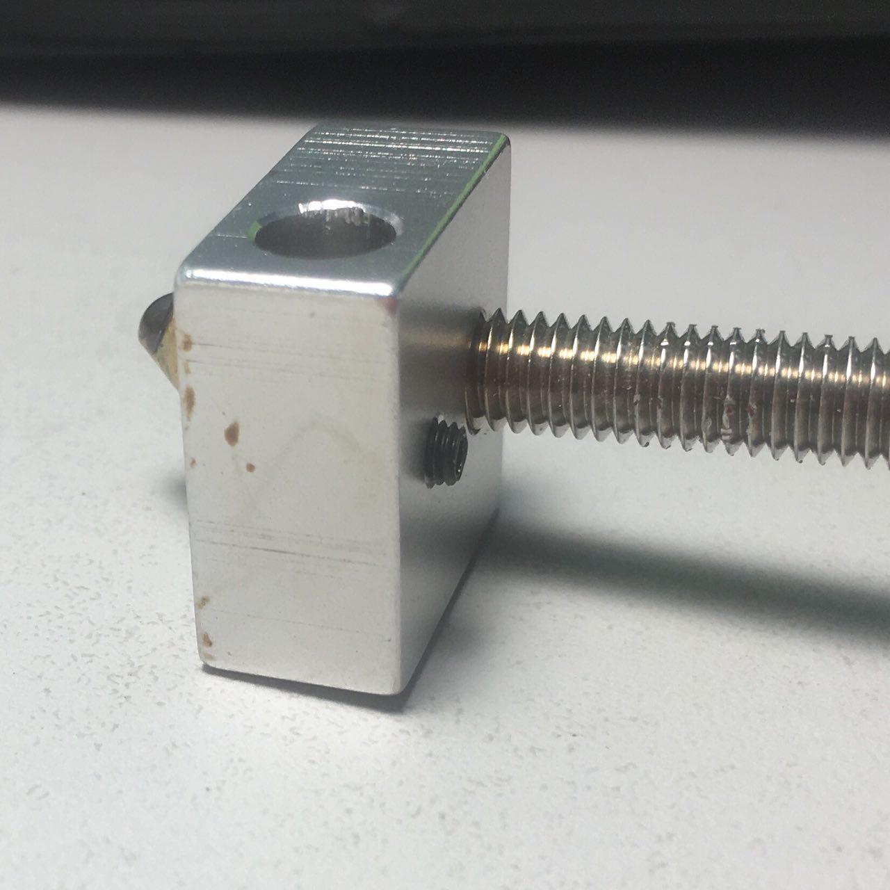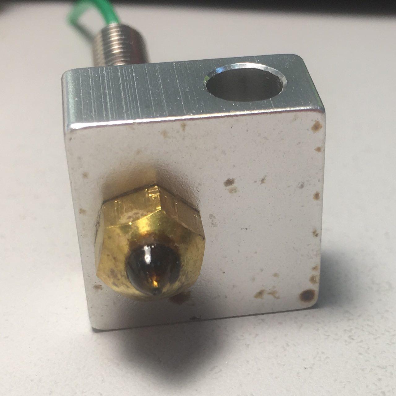 При печати (под конец проекта) обнаружил, что печать продолжается но пластик не выходит. Присмотрелся, увидел несколько (2-3) черные капли и все. Остановил процесс. Разобрал хотэнд и все, пока не вскрывал.