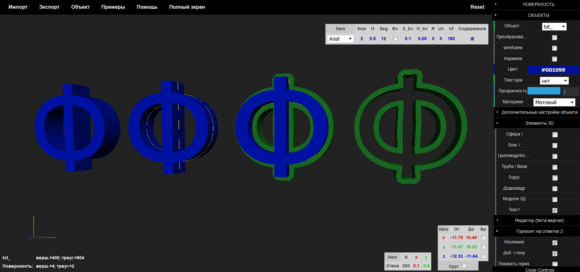 Таки образом моем сайте Конструктор 3Д (https://triang.online/konstruktor-3d/) реализована возможность создания вырубки шрифта за два шага: