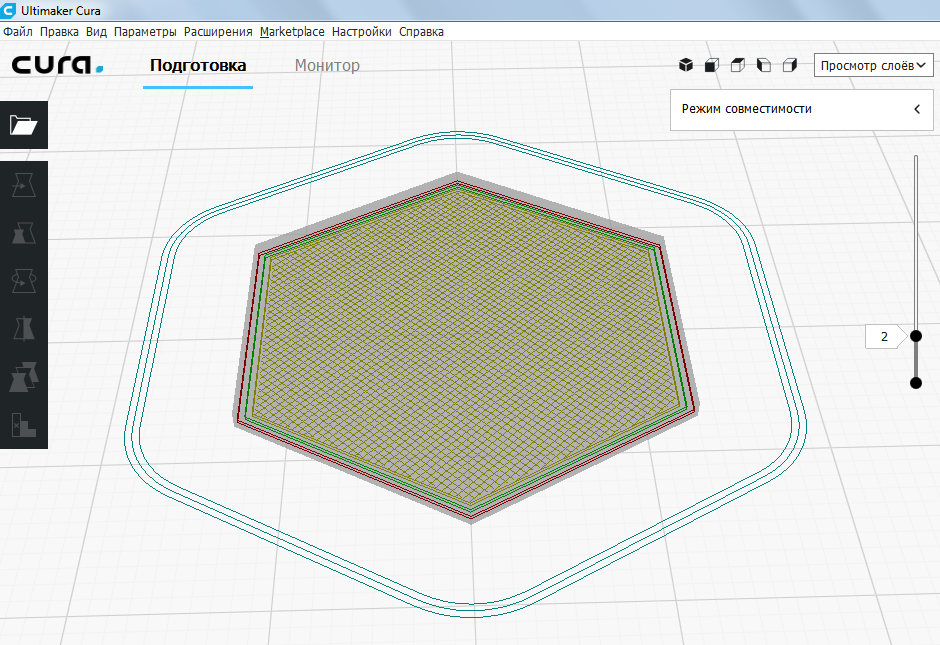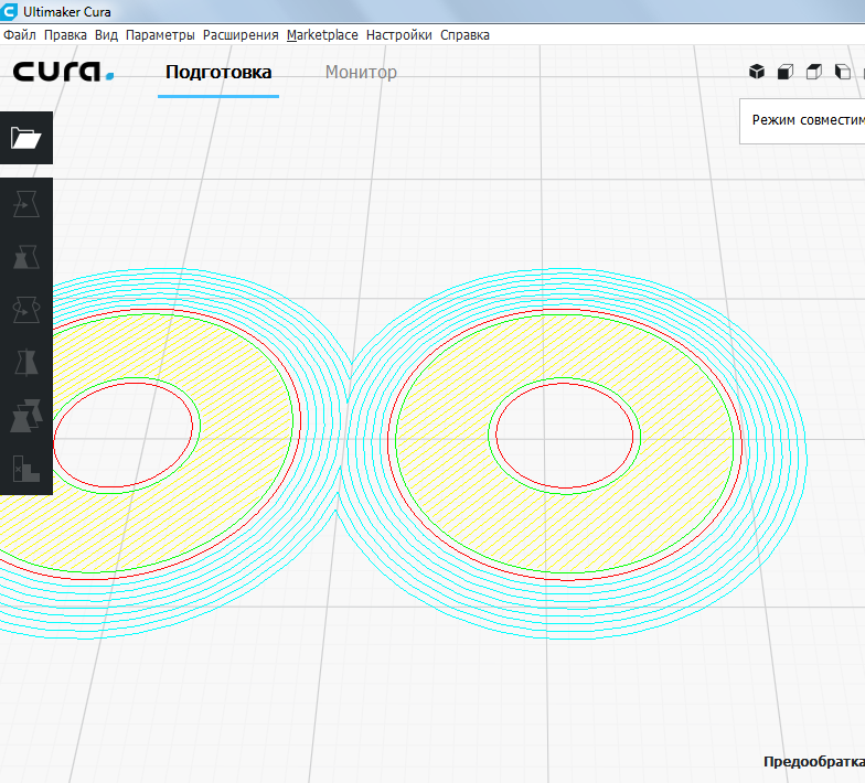 такой вот вид. Если открыть отслайсенный файл в gcode тоже самое.