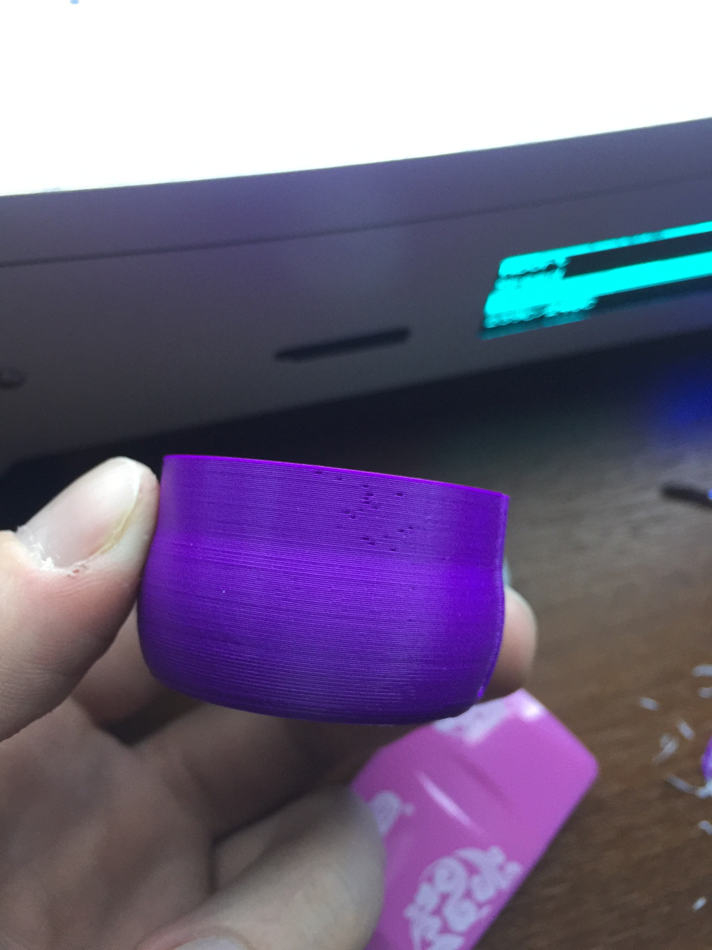 Подскажите с чем может быть связан вот такой дефект на внешней поверхности? Раньше такого не наблюдалось, появилось после смены катушки пластика REC АБС натурального цвета на фиолетовый, больше никаких параметров не менял
