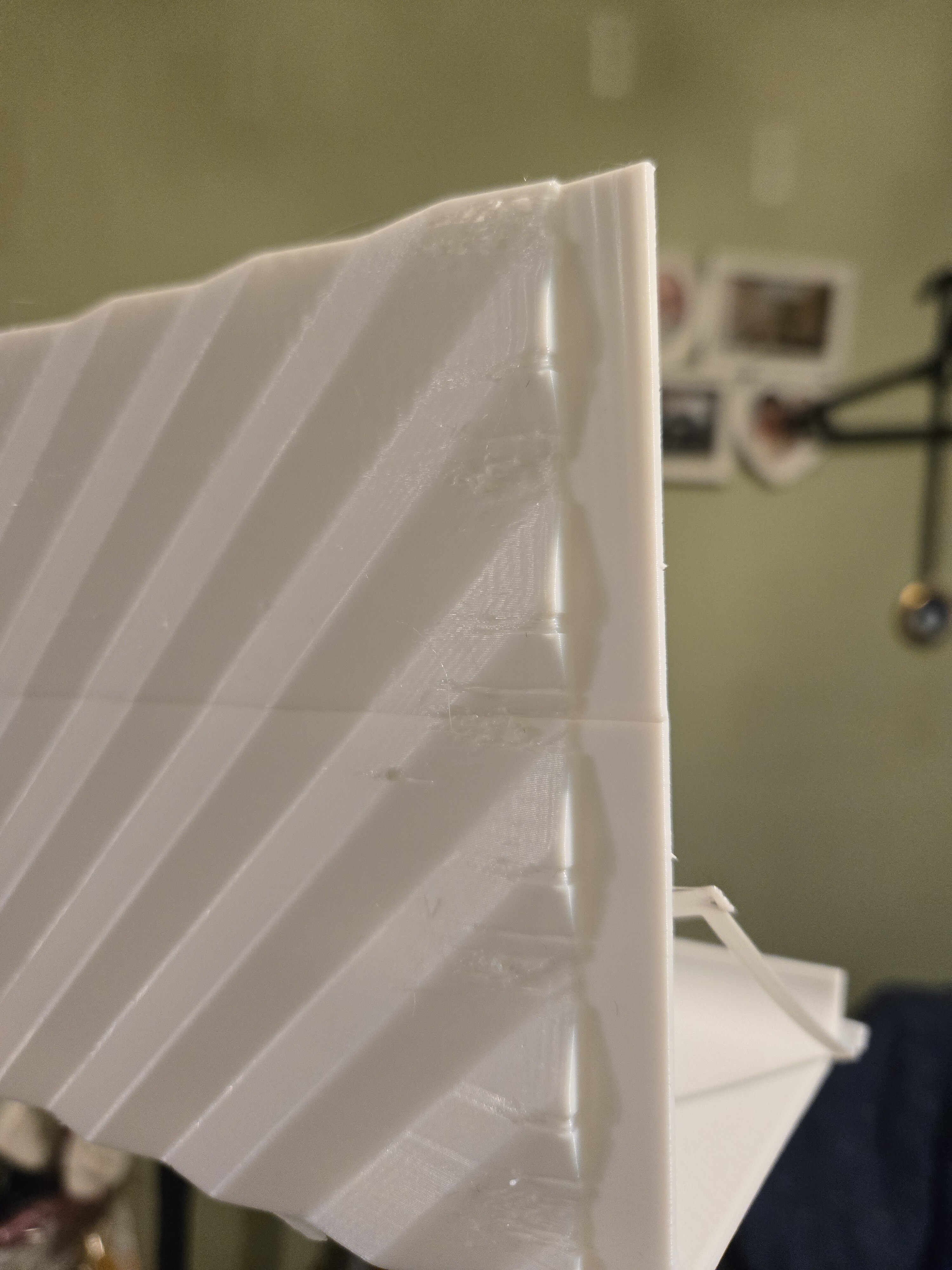 Вот такая история иногда происходит при печати. Не пойму почему, как видно происходит это на разной высоте. Смещение я еще понимаю почему, не жестко стоит часть детали. Причем я как понял это происходит там, где начинается печать слоя. Помогите профи🙏🙏🙏