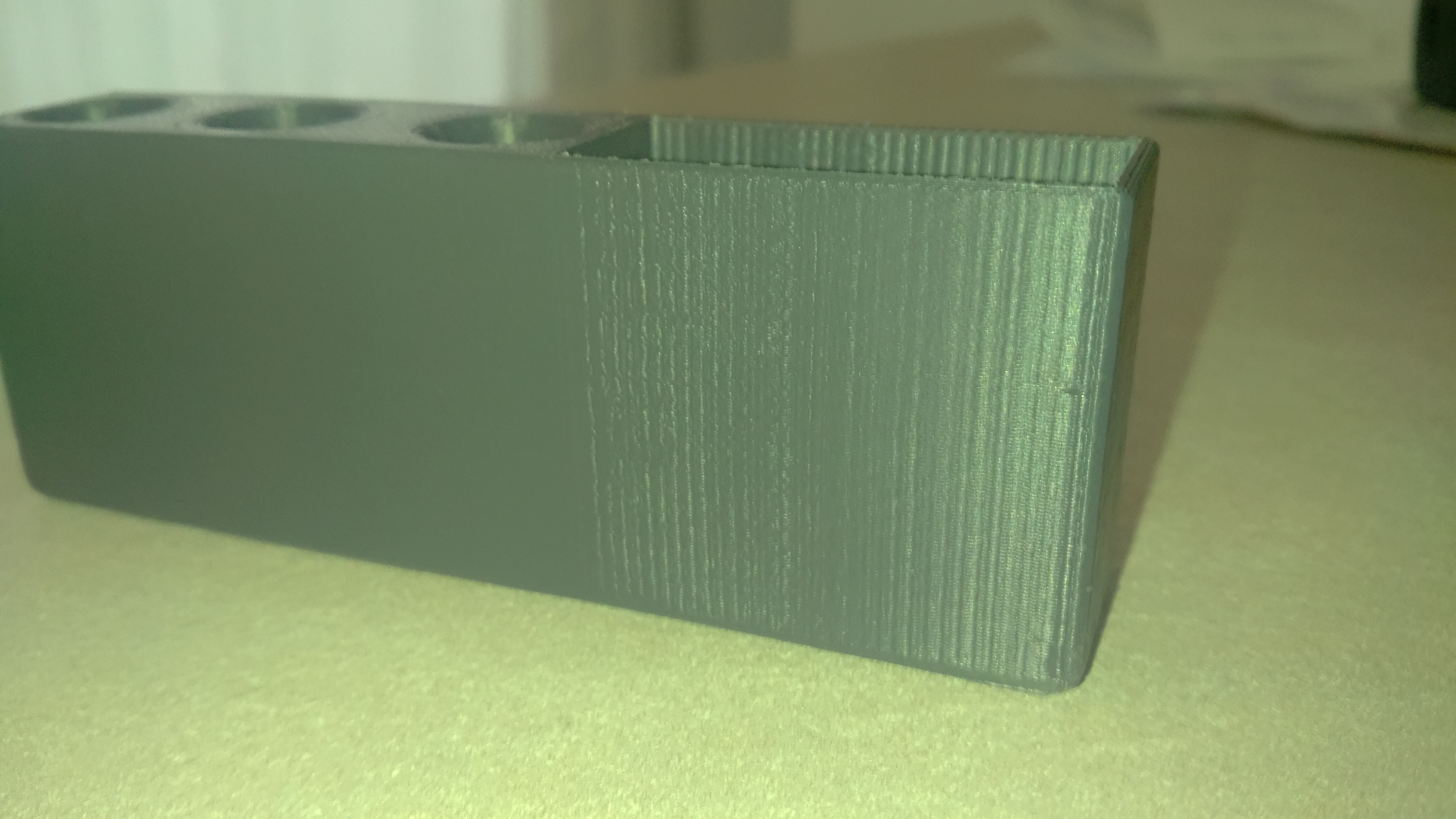 Привет, печатаю на дельте, стол откалиброван. Пластик чёрный АБС от бестфиламент, печатаются при температуре 210/100 (при большей температуре пластик перегревается) распечатал пенал для магнитной доски, и вижу какие-то дефекты, причём дефекты только в том месте, где тонкая стенка (1.5мм) и один угол. Сопло 0.4 слой 0.2Что такое? Как бороться?