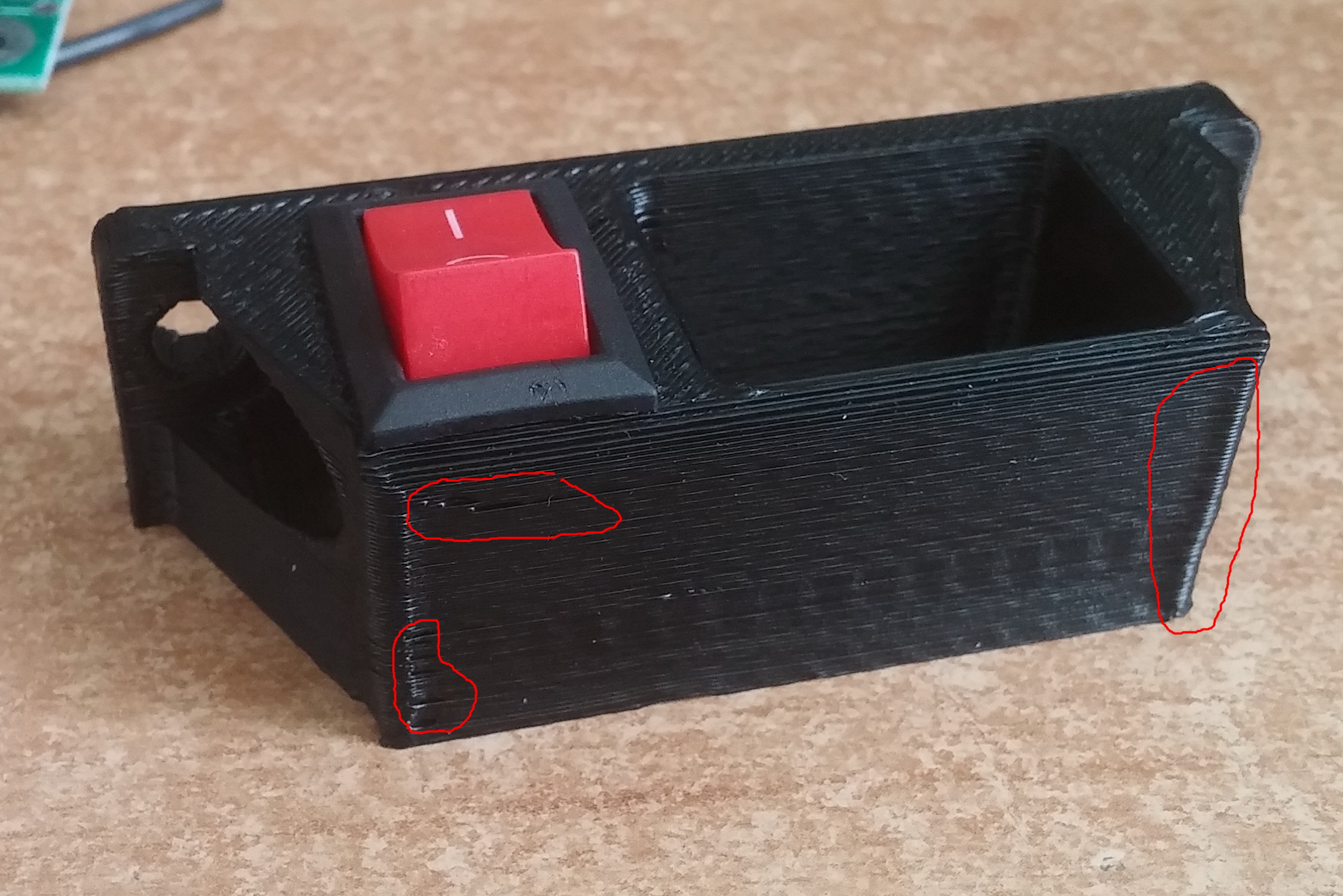 2. Небольшие зазоры в слое (В основном на каком-то одном участке сосредоточены по высоте. На фотке обвел красным. С другой стороны детали все идеально).