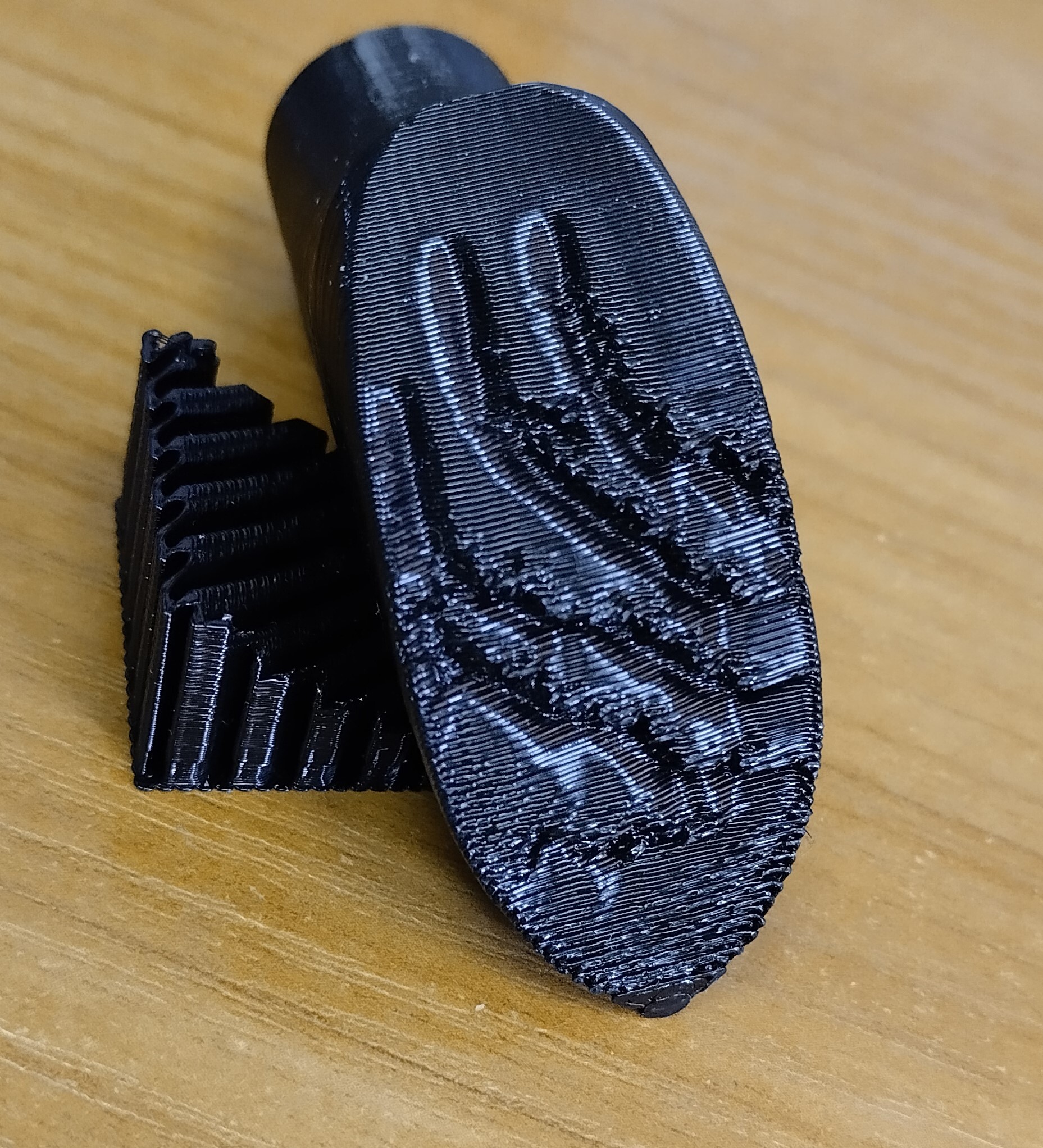 При печати пластиком eSUN-TPU95A, внизу модели наблюдаются какие-то странные промятые каналы. Плоскость с дефектом на углах меньше 45 гр. как раз над поддержками и не много выше их. При печати petg, такого не наблюдается. Что это может быть? Директ экструдер. Температура 230. Скорость 60.