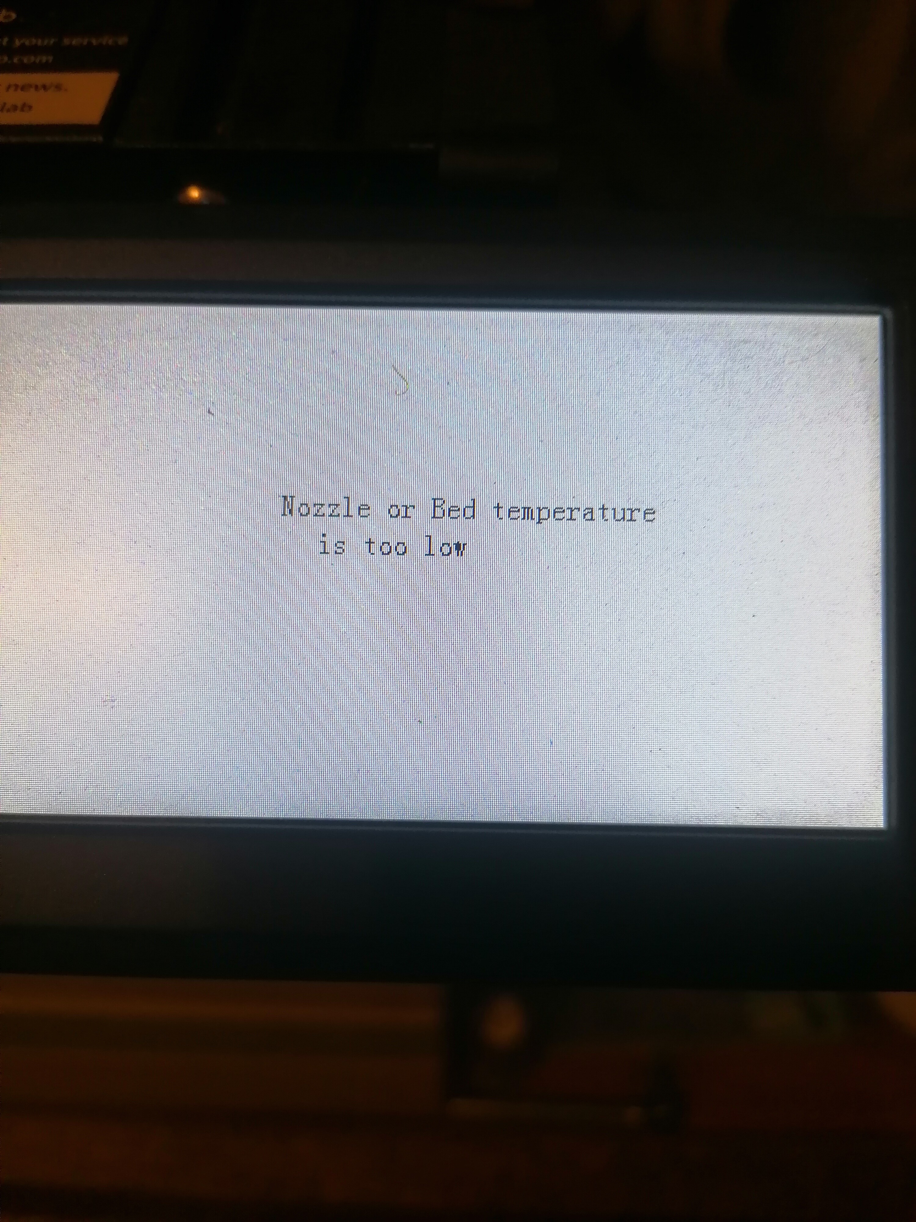Здравствуйте ! Вчера печатал принтер, а сегодня не хочет. Принтер вокселаб акилла. Нагревается до 200 градусов и отключается. На панели горит надпись-низкая температура стола или сопла. При этом при автовыгрузке свободно и быстро греется до 235. Включаю печать-и опять стол быстро греется, сопло до 220 и выключается, принтер пищит с надписью этой. Что может быть ? Уже всю голову сломал.
