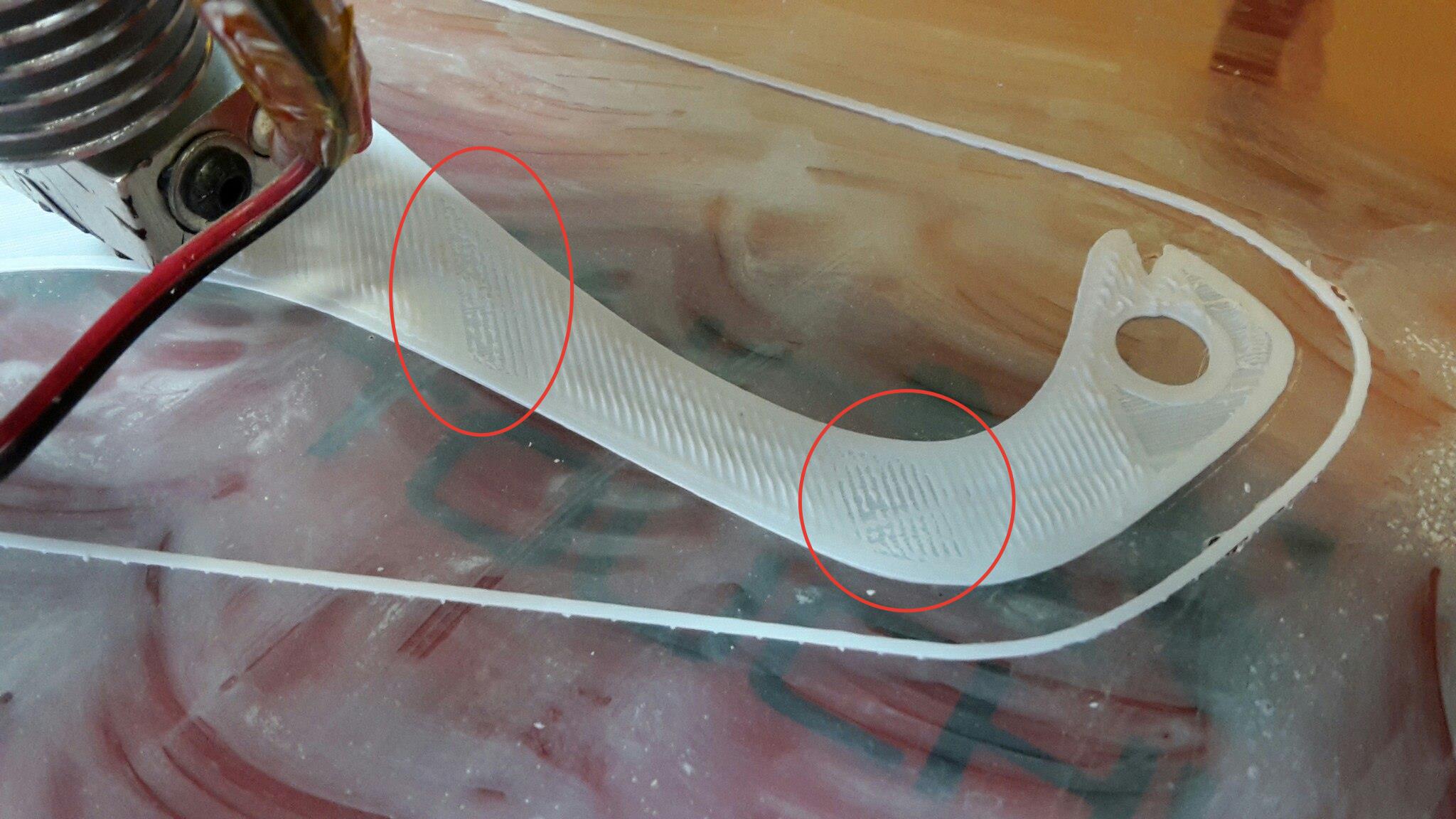 Процесс повторяется через примерно равные по площади участки.И так весь процесс печати: и на заливке, и на периметрах, и на первом слое, и на последующих. Заметнее, конечно, на заливке.