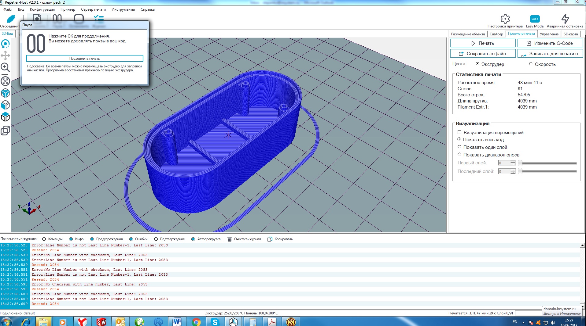 Помогите пожалуйста разобраться с принтером. При запуске на печать принтер отказывается печатать, все работает (оси, экструдер, стол...), прошивку менял. Сделал скиншот ошибки.