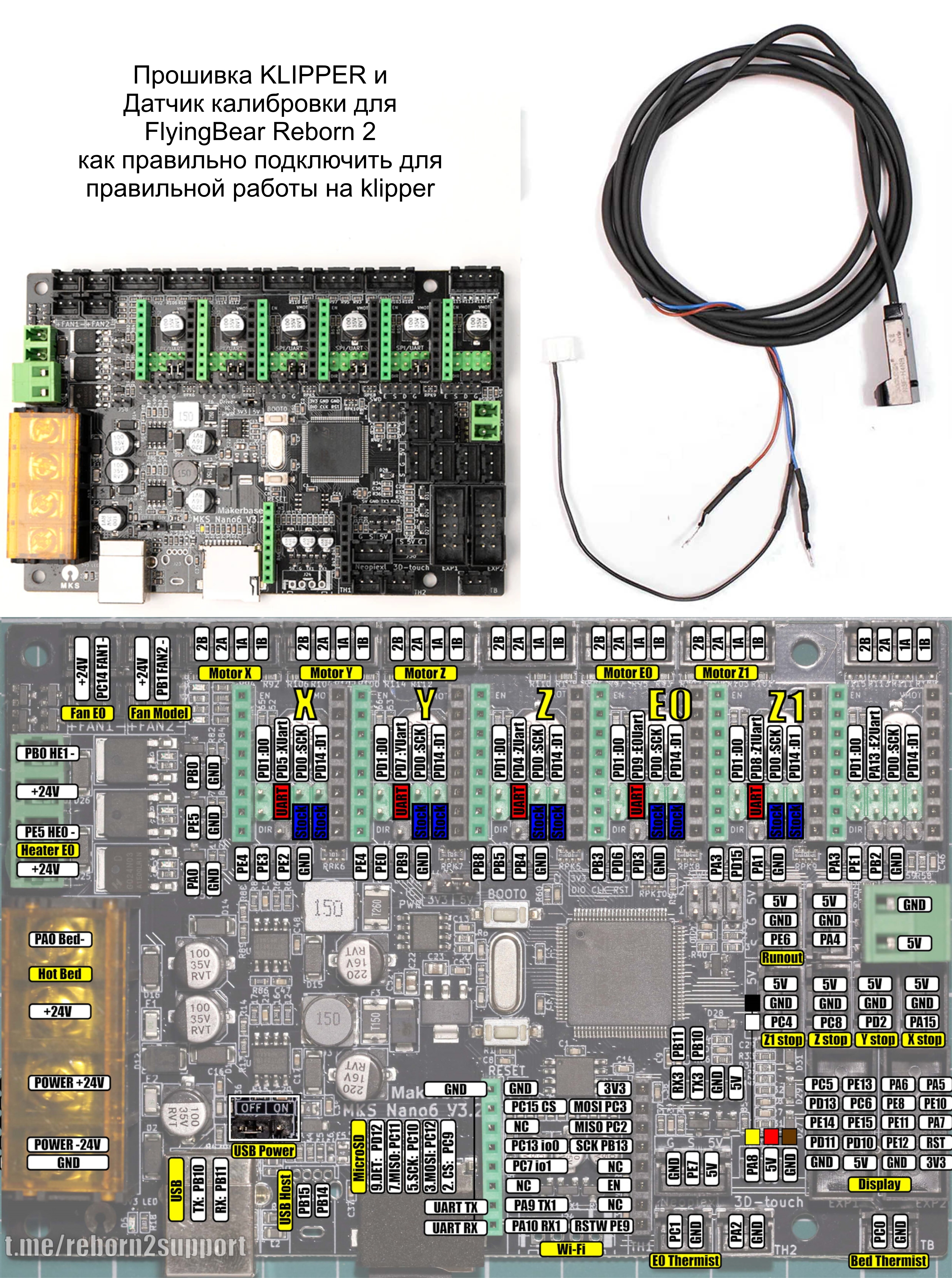Подскажите пожалуйста как правильно подключить оригинальный датчик калибровки для FlyingBear Reborn 2 у меня установлена прошивка KLIPPER если кто сталкивался напишите ответ пожалуйста