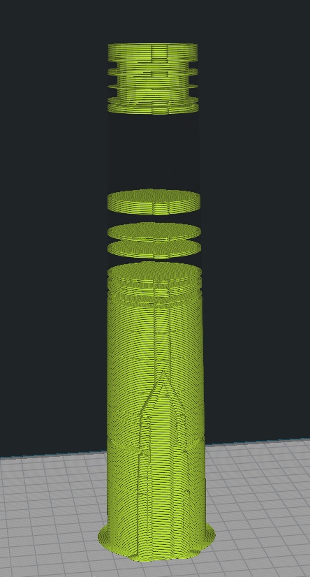 Вообщем, слайсер(cura) не правильно разрезала пропустив много слоёв.Никогда такого не видел, уже пытался саму модель по частям резать, но тоже не помогало.Если у кого была похожая ситуация или есть идеи буду рад прочесть.
