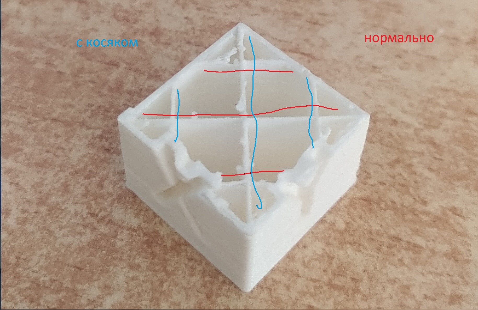 и есть один нюанс первыми печатаются перегородки сплошные и без косяка, а потом в другую диагональ косяк.