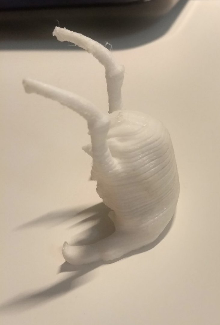 Напечатал эту модель хедкраба. Заметил дефект: на поверхности видны борозды, параллельные столу принтера, еще есть волоски элементами детали.