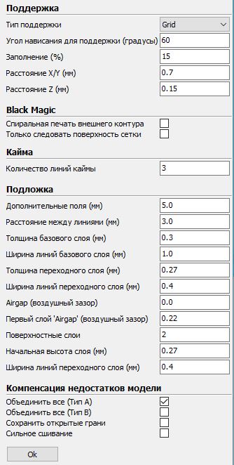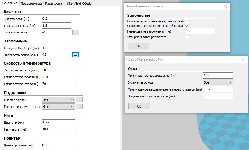 Настройки Cura прилагаю. Я пока новичок в данной области, поэтому очень рассчитываю на вашу поддержку.