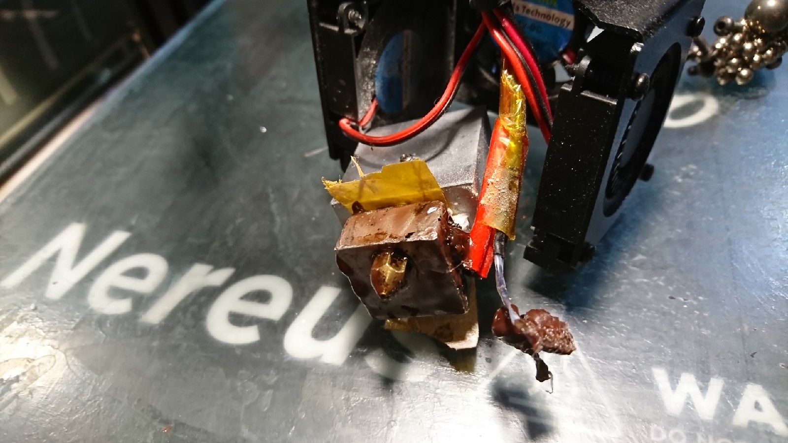 Честно признаться я очень слаб в матчасти хотенда, поэтому плохо представляю куда вставляется термодатчик, и что из этих 4-х проводов куда нужно деть..(2 красных - вроде сидят на месте, 2 белых выдернуты)