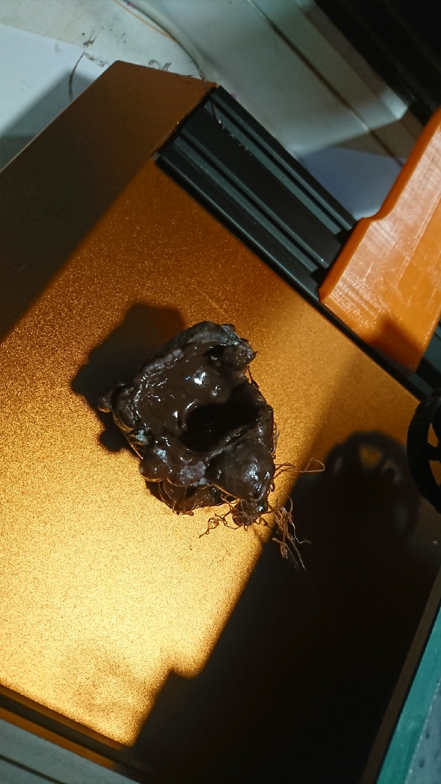 Все привет! Оставил как то на ночь печататься партию деталей как ужаснулся когда увидел эту картину с утра...Хотенд собрал на себя огроменную кучу пластика, не знаю по какой причине, быть может просто одна из деталей отклеилась и потянула за собой одеяло...