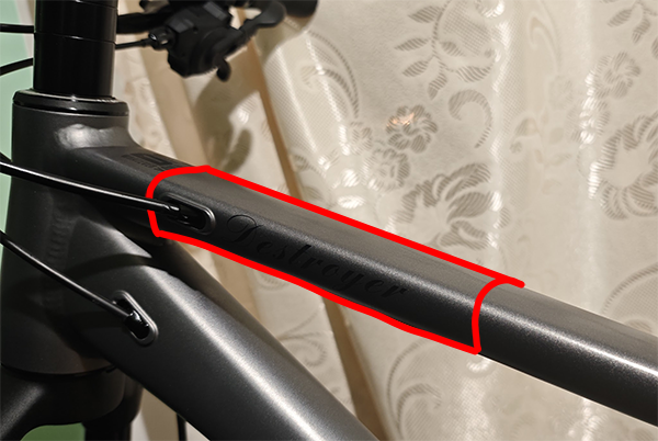 Привет всем. Преамбула: Показанный на фото красным участок рамы велосипеда сильнее всего страдает, когда велосипед пристегивается ко всяким там столбам. Есть виниловые и прочие всякие гравийные пленки, но в неудачных случаях руль иногда поворачивается, велосипеды скользят и какой-нибудь бетонный столб преспокойно процарапывает защитные пленки до краски на раме.