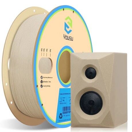 - YOUSU Wood PLA - на фото в карточке товара был почти 1 в 1 как нужный. По факту выглядит светло-жёлтым и расстроил меня больше всего (на общем фото модель по центру) т.к. мало того, что цвет не тот, так и качество весьма посредственное при его цене (печатается на K2 с заметными артефактами).
