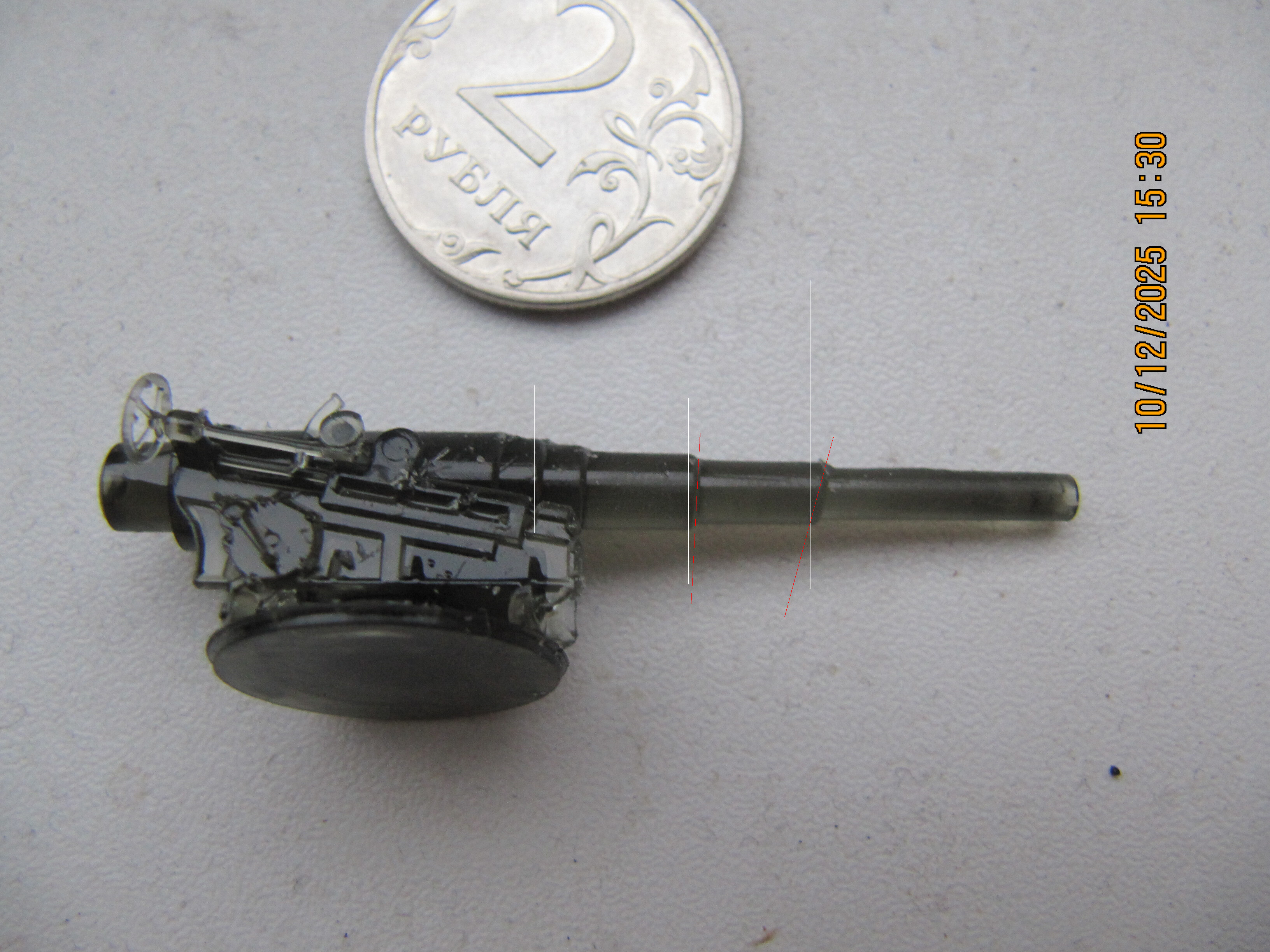 Здравия. Напечатал буквально свой первый фотополимерный объект. На объекте искажения геометрии - кольца ствола "поползли" вверху вправо. При печати изделие развернул на 45 градусов и та часть, где искажение - печаталась первой.