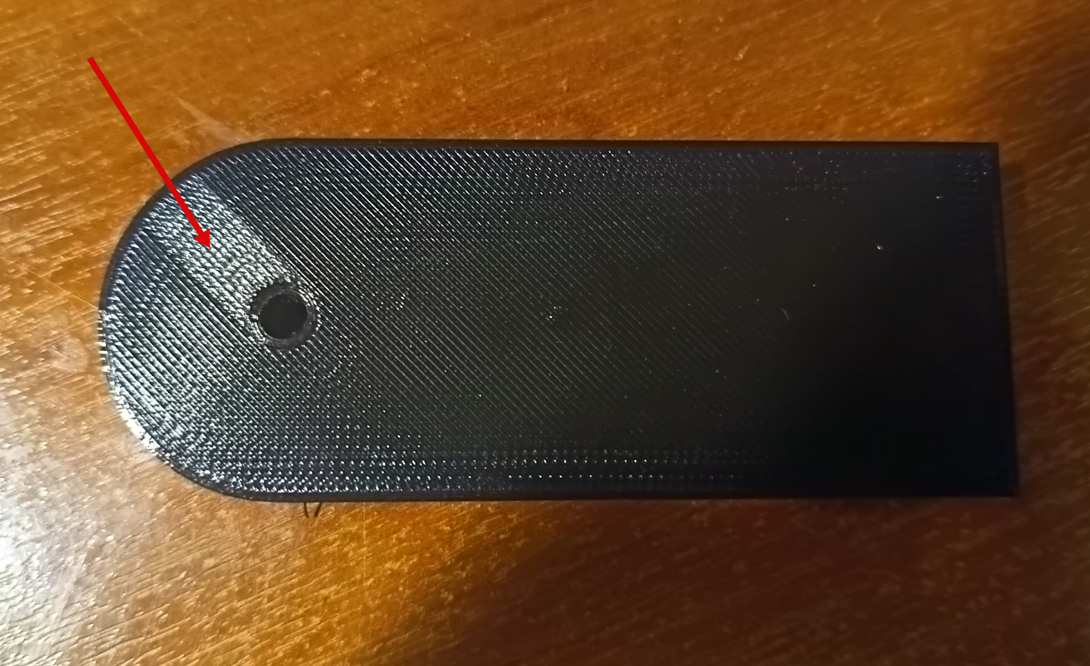 При печати детали, на верхнем слое происходит неравномерная пропечатка, если на детали находится отверстие, хотя на ощупь этого практически нет. Материал PETG, постобработка затруднительна. Как добиться равномерности на уровне слайсера?
