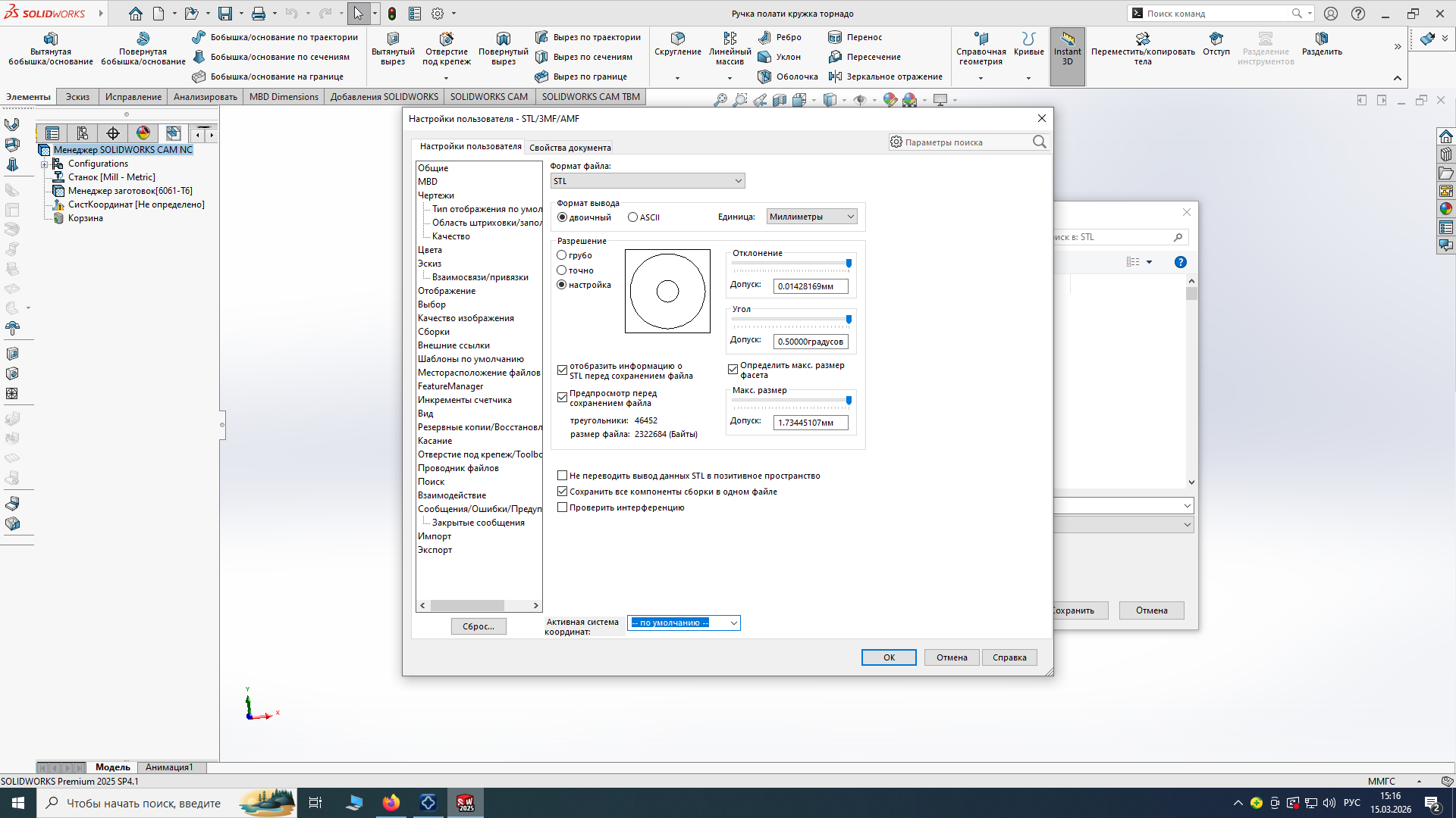 Как избавиться от граней в SOLIDWORKS 2025 при сохранении в STL