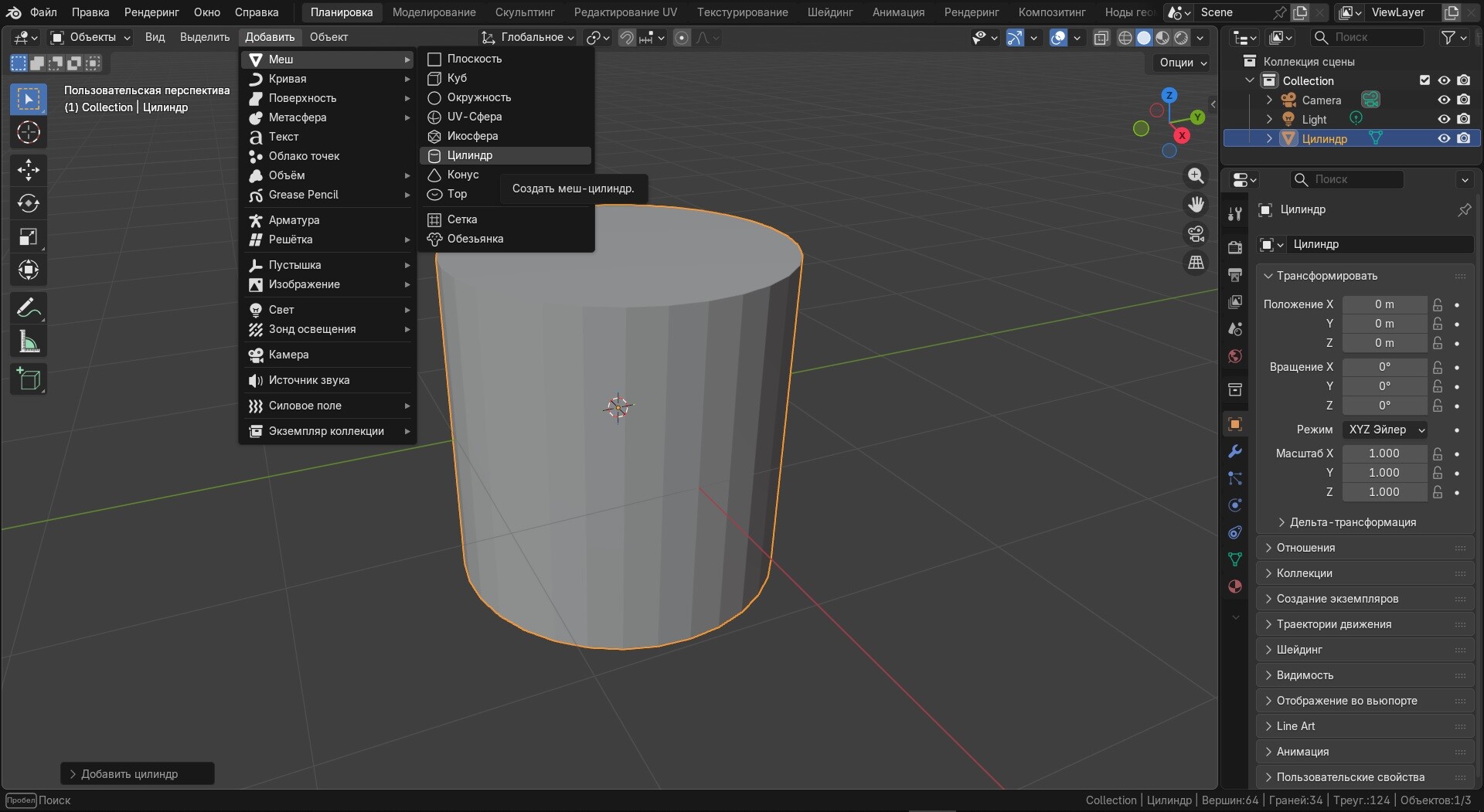 Как задать количество вершин/граней при создании цилиндра/конуса в Blender 5?