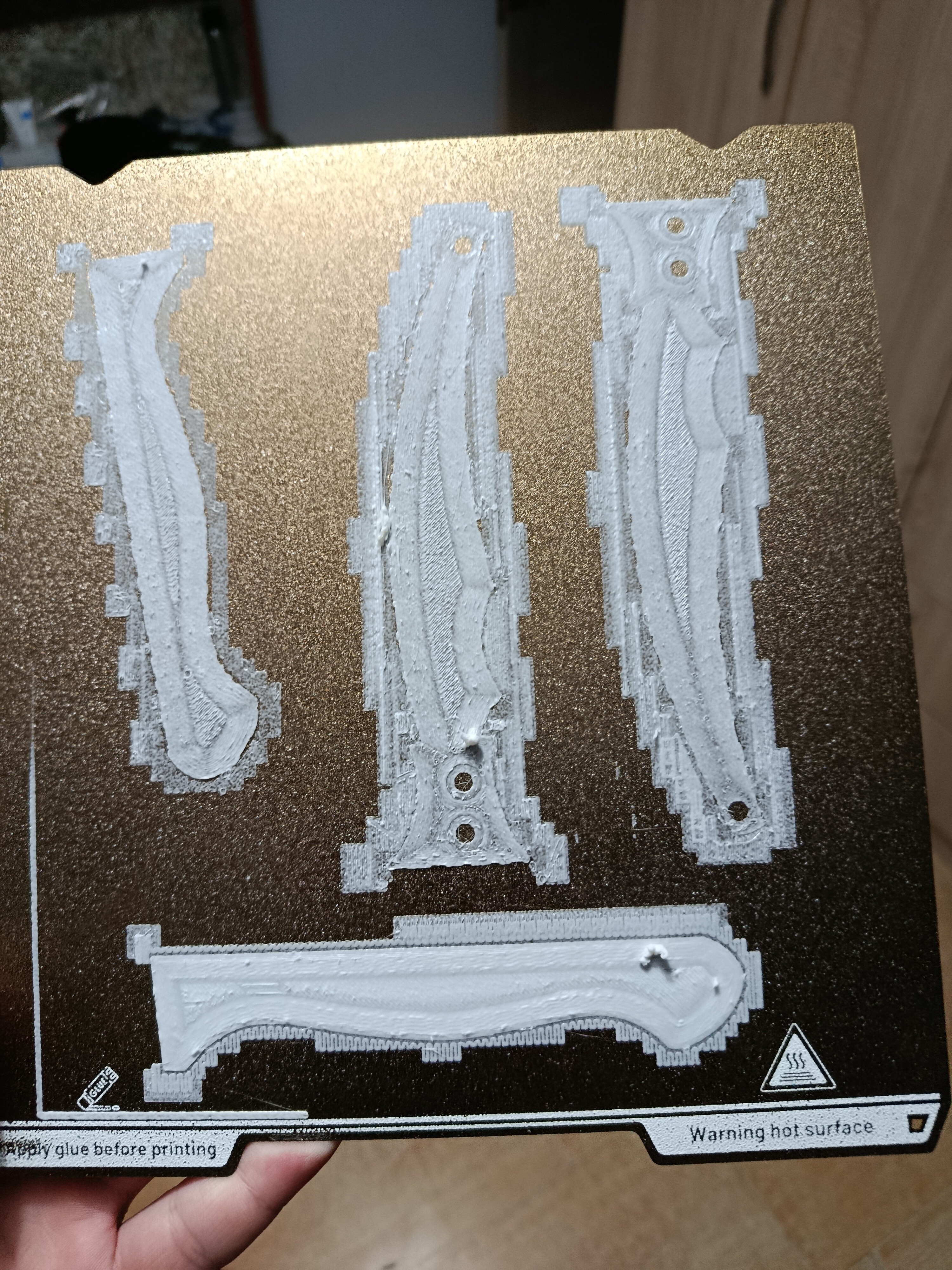 Принтер Flying bear s1. Недавно поставил катушку Petg mako white. Ранее подобных проблем при печати пластиками Petg (других видов и производителей) не замечал. Просушил и поставил катушку, провёл калибровки. На калибровочных моделях всё идеально. Тест допусков орка и орка куб идеал, но при печати в полевых условиях всегда появляются комки на первых слоях. Если повезло и они не большие, то слоя с 3-4 печать идёт отлично. Настройки орка для Petg generic почти без изменений ( не считая ПЕ, температуру и ретракты), слой 0.2, 0.12, 0.8 и нет разницы. Из настроек менял только заполнение (проблемы при любом заполнении), кайму и поддержки. Грешил на калибровку стола, но приньер сам проводит калибровку, строит карту высот и т.д. Думал на пластик, но почему тогда калибровочные модели печатаются идеально. Более того, перед каждой печатью прочищаю сопло, так как на нём налипает ком пластика. Сопло не забито, на что ещё думать не знаю. Кто сталкивался?