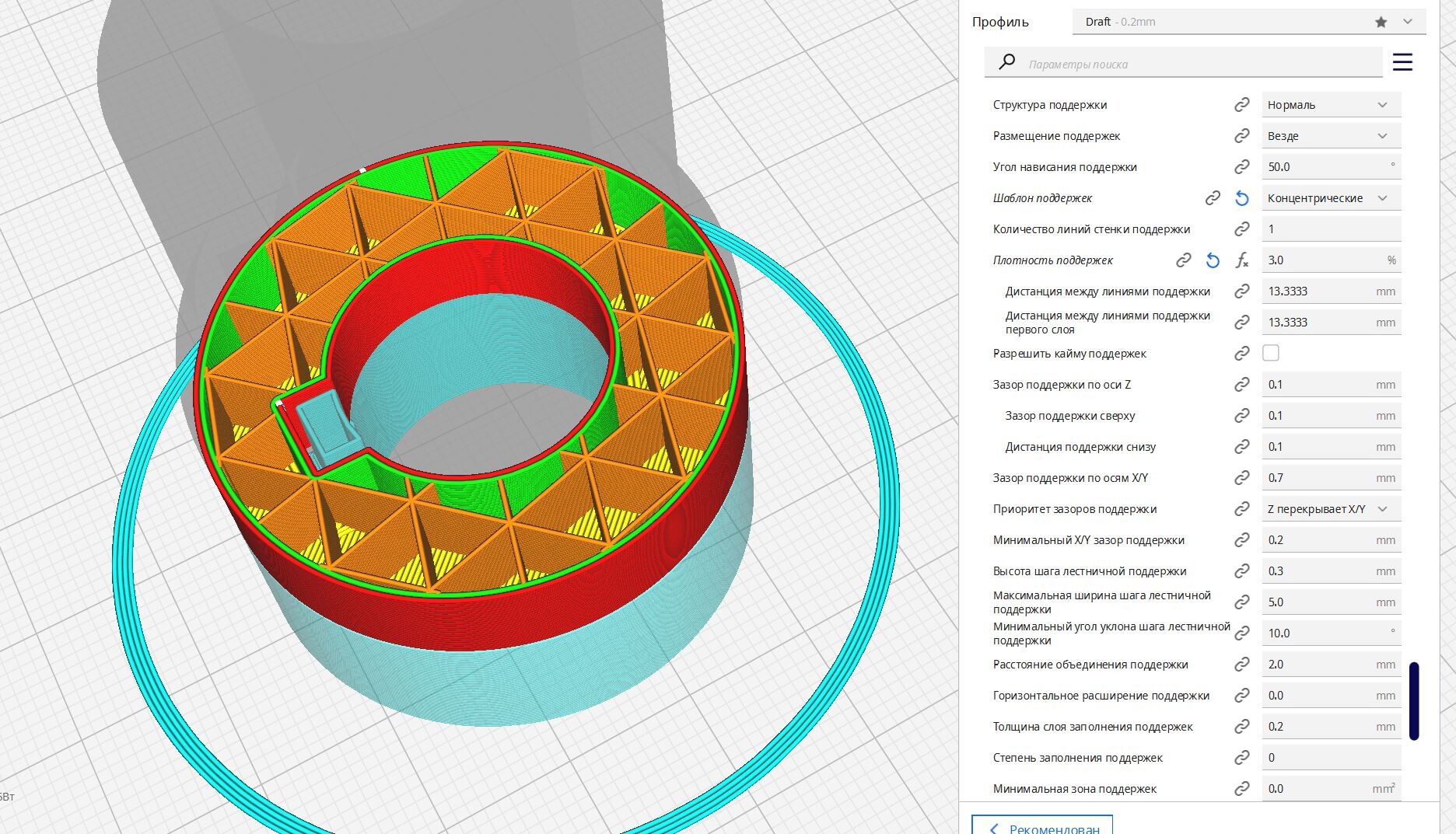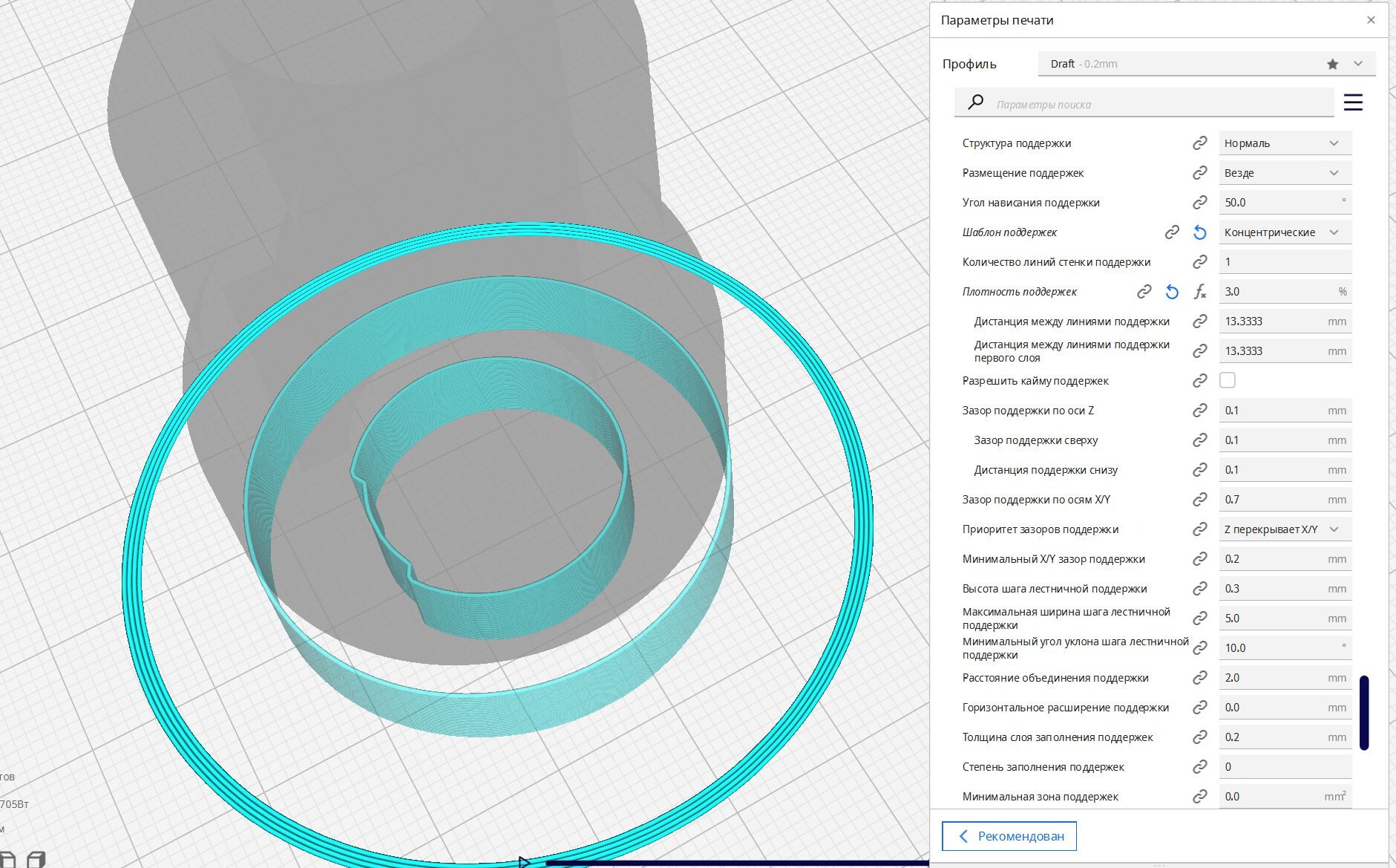 Всем привет, в Cura самой свежей версии, не могу добиться концетрических поддержек нужной плотности. Меняется только толщина стенок в линиях, но не само количество стенок. Стенок только 2, менял и плотность и другие параметры.