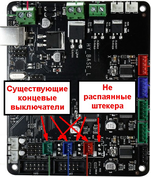 Добрый день. Есть вот такой, чисто риторический, вопрос. У меня на принтере стоит материнская плата hy_base_l v1.0. Работает она нормально, а какая прошивка у неё стоит я не знаю. На принтере установлены 3 концевых выключателя, по одному на каждую ось. Но бывают такие моменты когда механизм по внешним причинам при подаче бывает клинит и шаговый двигатель не может переместить стол, а так как двигатель синхронная машина то программа думает что стол переместился на нужное расстояние, по факту нет. Но по закону подлости после этого принтер хочет переместить экструдер далеко в право и, естественно, ударяет экструдером в правую часть траверсы. Это не хорошо. Вот и возникла идея чтобы такого не было установить дополнительные концевые выключатели на другой стороне относительно существующих. Ну, конечно, расспаять штекера и сообразить как можно 'примостырить' их, это всё решается.Но вот вопрос, будет ли прошивка при подачи двигателями реагировать на эти концевые или нет??? Может быть на плате есть место для штекеров, а программа просто игнорирует значение входов которых у неё нет.