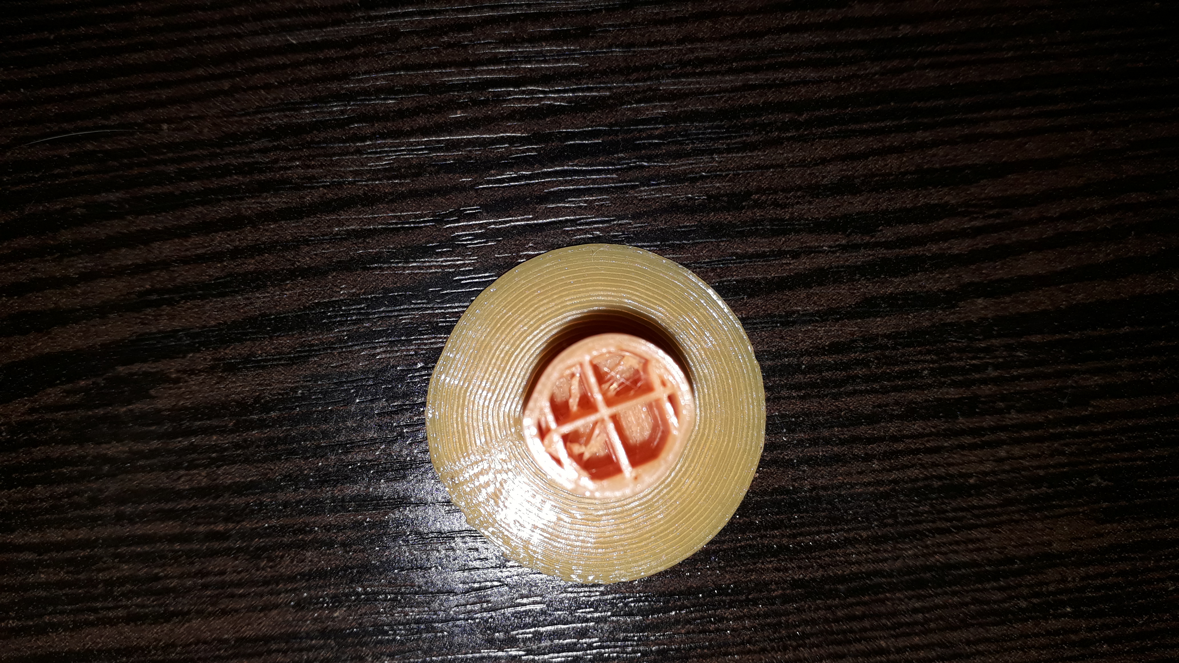 и на выхлопе получилась печалька, на лицо явный косяк причину которого не могу понять, округлые формы принтер печатает не ровными элипсами, на больших деталях не сильно заметно (поэтому не сразу заметил) но чем меньше элемент печати тем более явны артефакты.