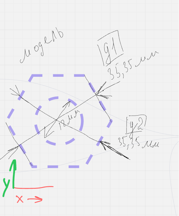 сорян за криворукость рисования. - на рисунке то что ожидается (Д1 и Д2) -диагонали печатая такой саморучный тест- можно измерить круг и диагонали- тоесть движение по (д1\д2-движение 1 двигателя)\X\Y.Модель =35.35мм \круг= 12ммРезультаты печати = x=35.12мм\ y=35.26мм\д1=35.22\д2=35.14мм круг овальный = д1=11.59 \д2=11.95 Получается все размеры меньше ожидаемого(и подшипник не вставляется в деталь а свободно гуляет)Так как видно что размеры с любой стороны чуть меньше (35.23мм) в место 35.35мм я подумал дело в потоке, а он у меня = 0.932 (ORCA) но поднятие до 1.05 не дало изменений размера.решил что все может упираться в Скорость\ускорение\PA(а использую я адаптивный PA).Скорость сбросил с 175мм до 30мм ускорение с 4к до 1к. PA - пробовал менять значения от 0.001 до 0.12, PA на минимуме своем и максимуме говорит о своем существовании но диз-размер не проходит. Input shaping- запускал тест несколько раз, но изменений в геометрии значительной не наблюдалось.Типо прямые формы= хорошо и отклонение доли мм. до круги и отверстия -круглых размеров овальные и видно глазом.