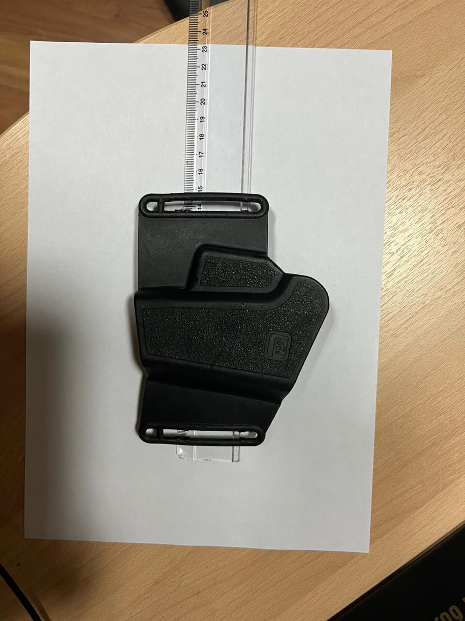 Доброго времени суток необходимо сделать модель (glock sport/combat holster) это кобура для пистолета Glock. Размеров нет только по фото