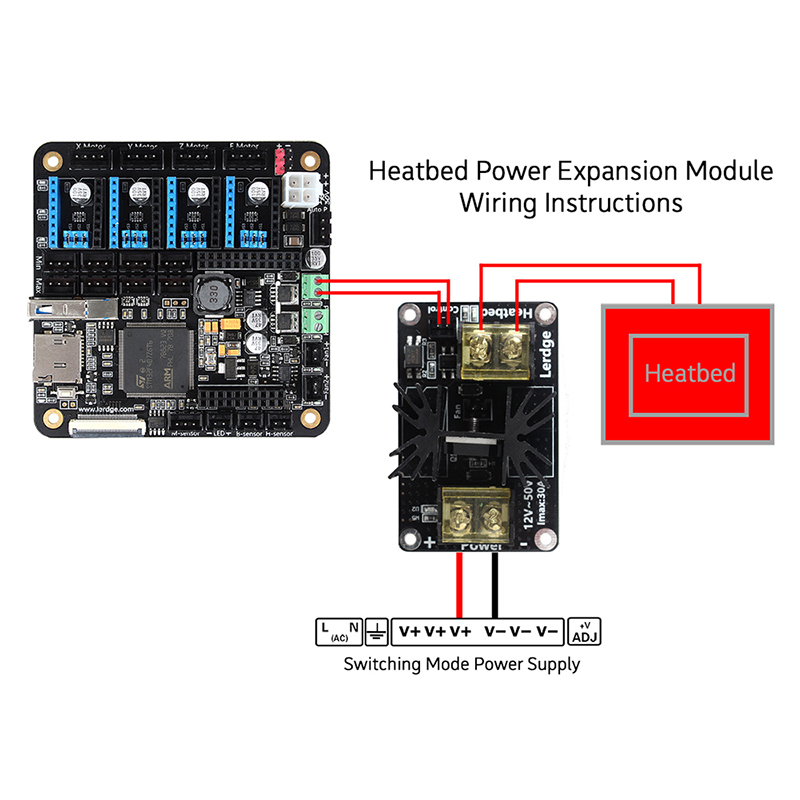 - от платы управления Lerdge-S через разъем нагрева стола по управляющему проводу плата соединена с модулем нагрева стола.