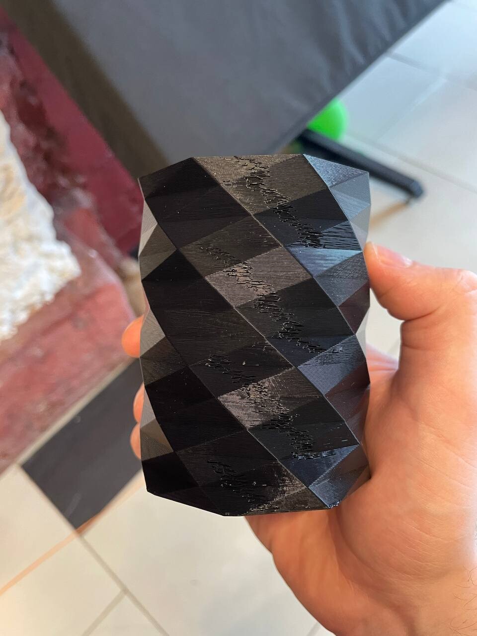 Добрый день. В который раз сталкиваюсь с одной и той же проблемой: локальная недоэкструзия (фото прилагаю). Никак не могу понять в чем причина. Пробовал разные температурные режимы, повышал/понижал поток на 10-15%, сушил пластик, брал новую катушку. Все одно и то же. Дефект проявляет себя как правило в одном и том же месте на модели. В остальных местах все нормально.