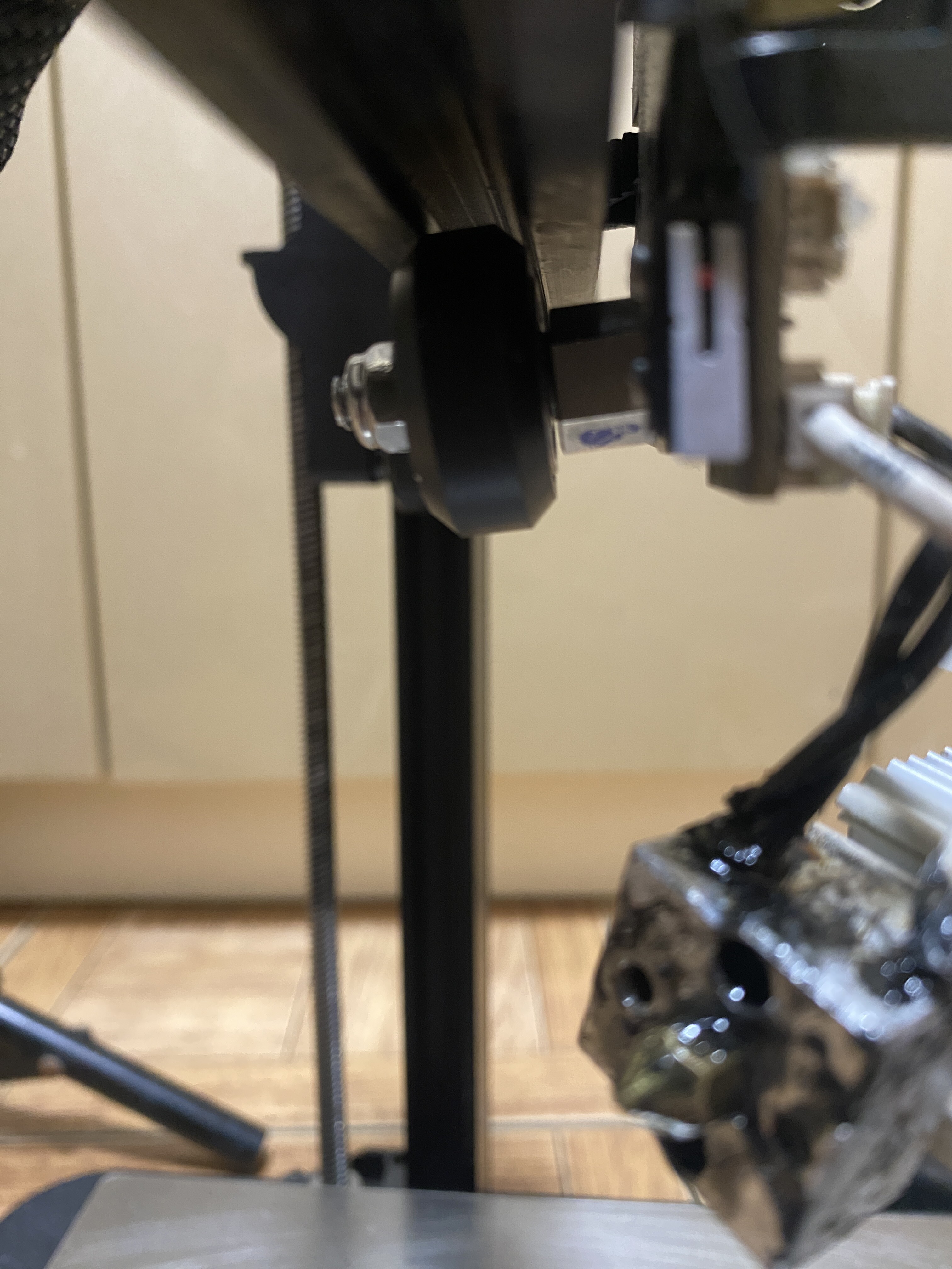 Начал сильно люфтить экструдер, думал проблема в колесиках подшипников, тк они уже были достаточно стерты, заменил на новые, но люфт все равно большой, люфтит именно в местах подшипниках полностью вся платформа экструдера, смотря на нижнее колесико оно будто уходит вниз с болтом, хотя регулировочная гайка выкручена вверх, не знаю что уже делать