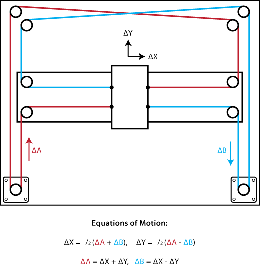 Есть такие формулы движения в coreXY. Правильно ли я понимаю что в H-Bot формулы такие же. Т.е. получается если у тебя есть Core XY, то переделывать тебе придется только механику. Программно в плане управления двигателями различий нет