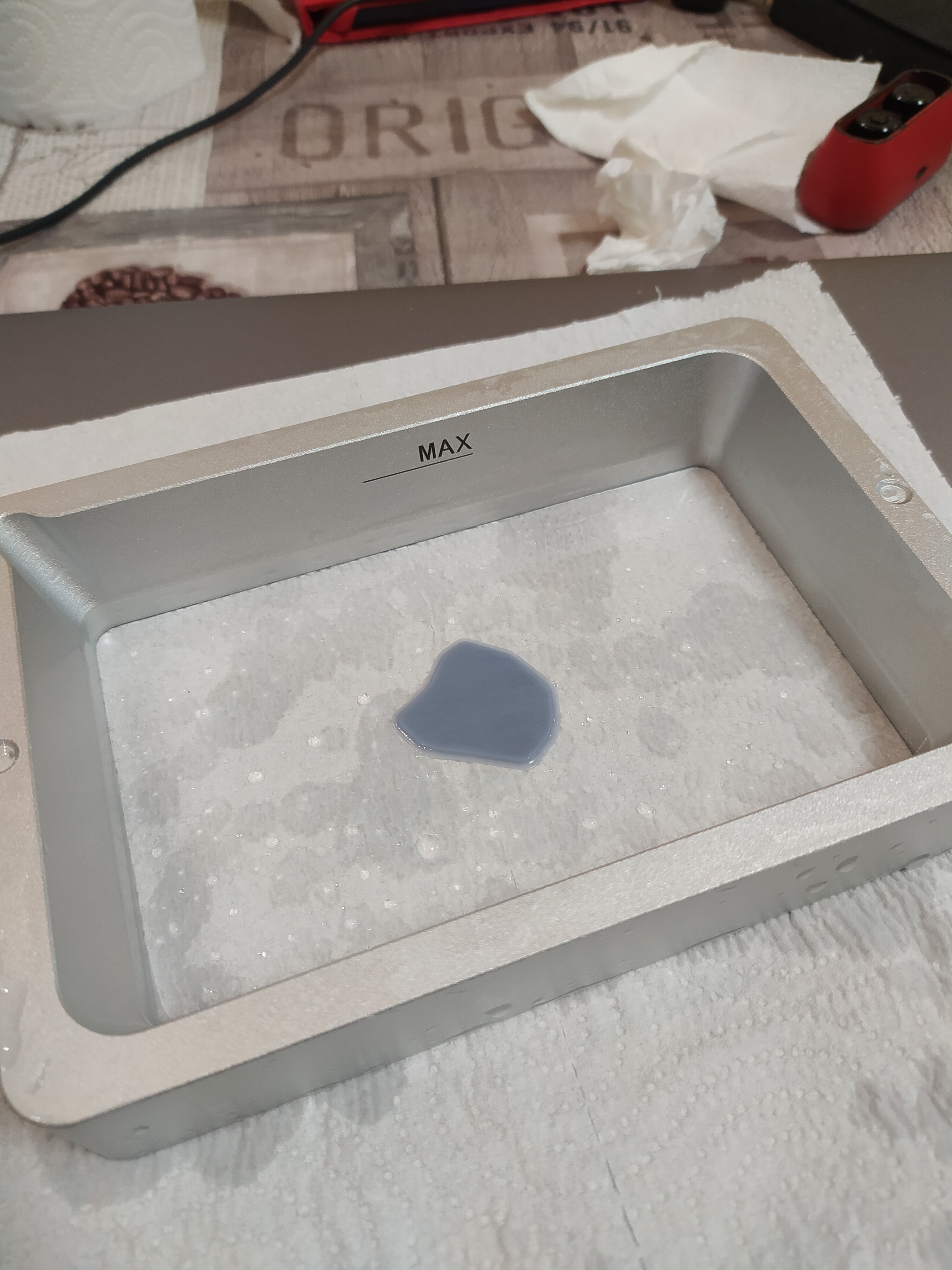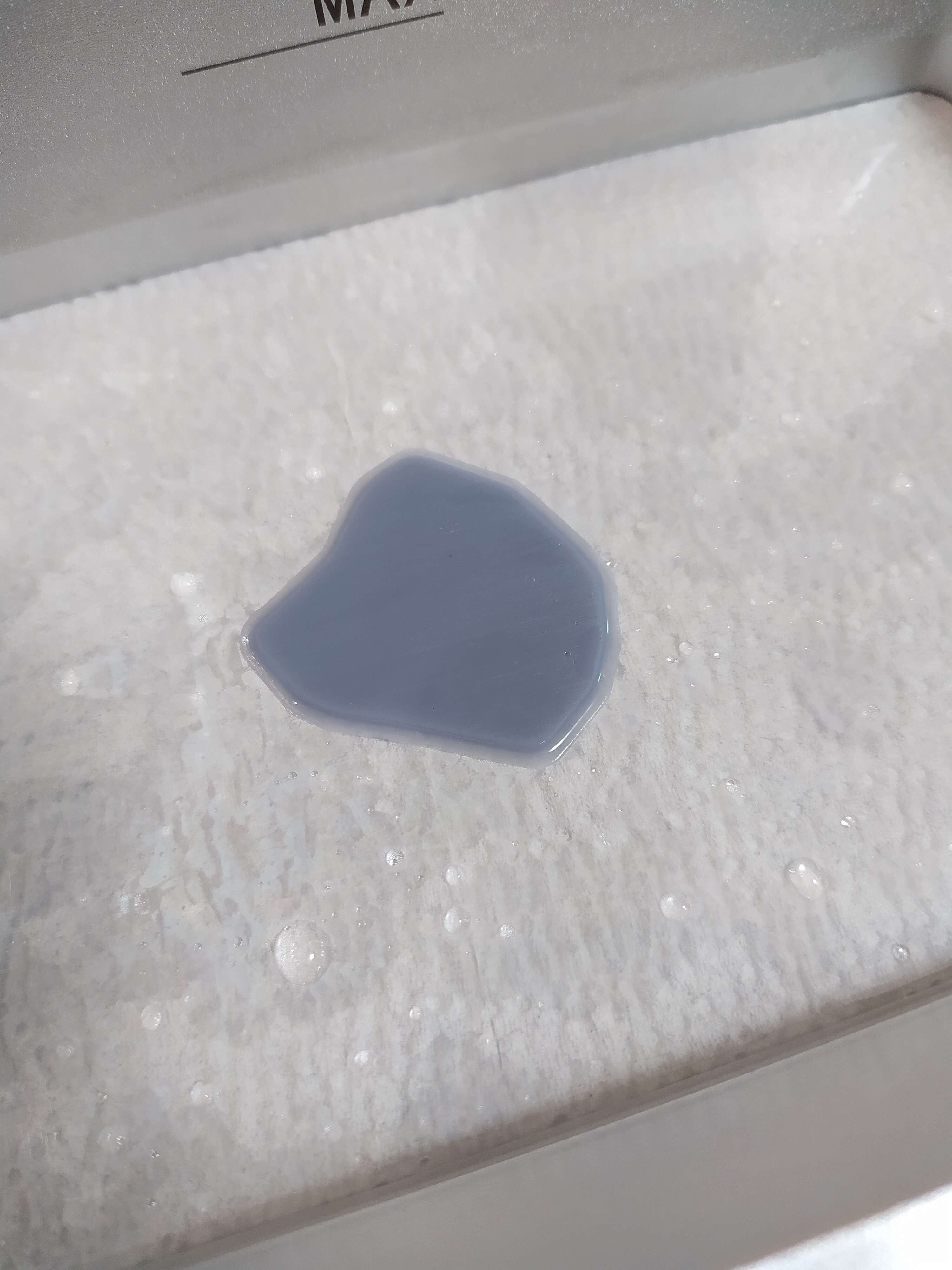 Странно,что время засветки было 2 сек, но по ощущениям все 10, печатал дольше расчетного раза в 2. Отклеить рафт получилось наточенным пластиковым шпателем. Но как ни аккуратно это делать, 2 маленькие вмятины оставил
