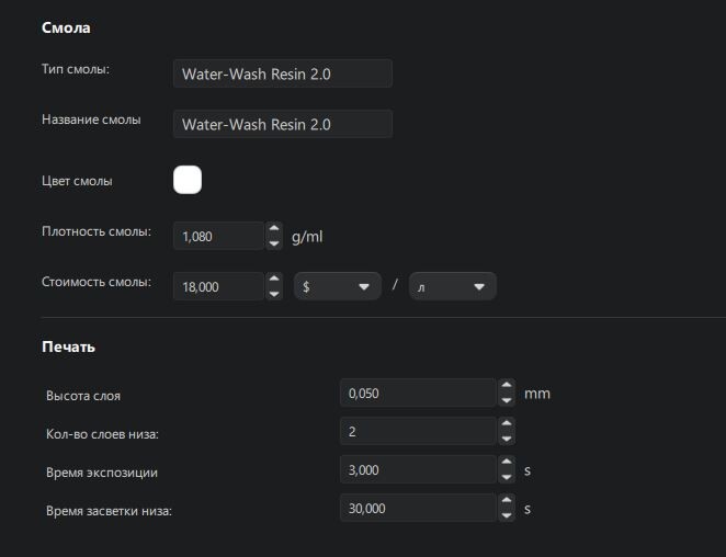 Проблему описал в заголовке. Присутствовала изначально при проверочной печати RERP на принтере Anycubic photon mono 4 (смола Water-Wash 2.0). Последние настройки в Chitubox'e:Изначально печатал на Photon Workshop и некоторые настройки там были указаны только выше (например засветка низа была 40, кол-во слоёв низа - 6, переход слои граф было и 0, нижняя толерантность и усадка были включены), но более чёткой проверки HARZ lab test'a я достиг на chitubox и решил продолжить там, да и настроек там побольше нежели в workshop'e. Я хотел поиграться с этими настройками, так как я попытался в Lychee Slicer занижать засветку основания до 20-ти, 15-ти и 10-ти (я бы не сказал что разница вообще была, но модель хотя бы отстала целой на показателе 10), но отсюда вытекает новая проблема:
