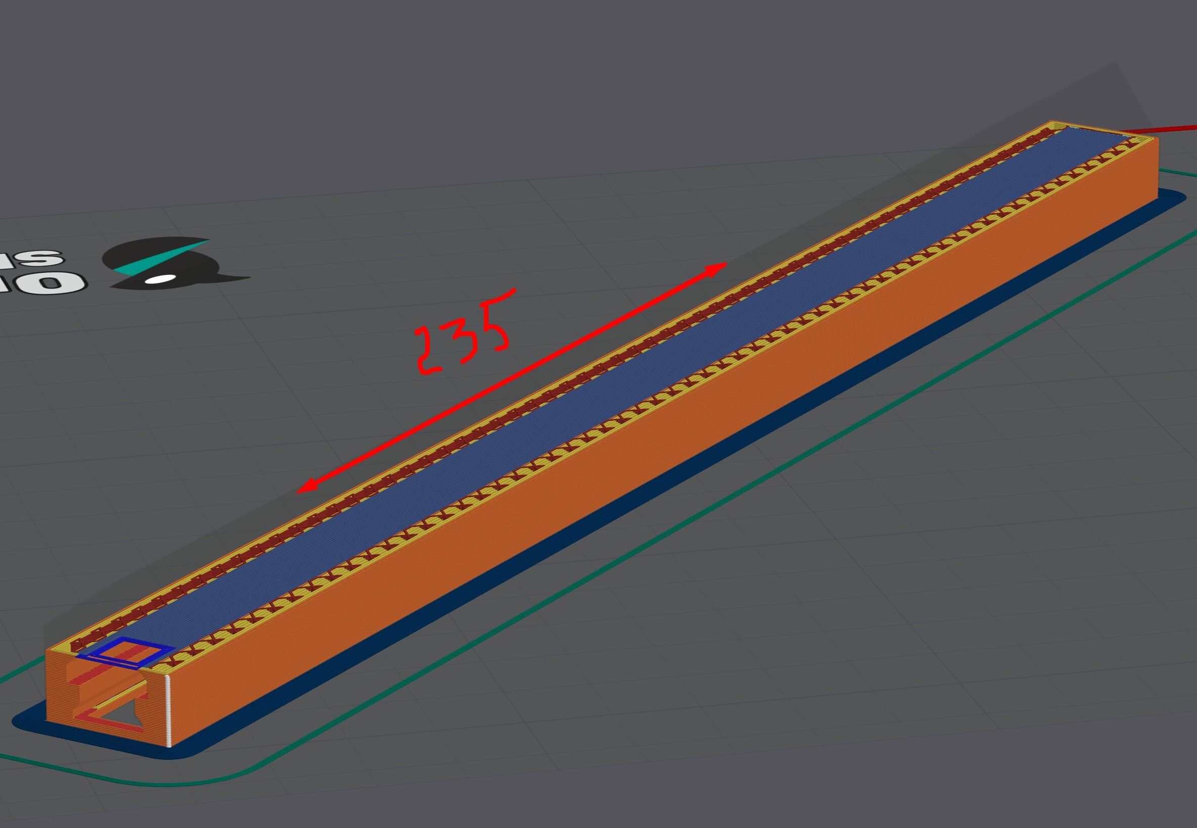 Не проверил, отправил на печать деталь. Орка построила мосты ВДОЛЬ(!) детали длиной 235мм. )) Как так-то?!Это можно где-то поправить? Не нашел поворота мостов.